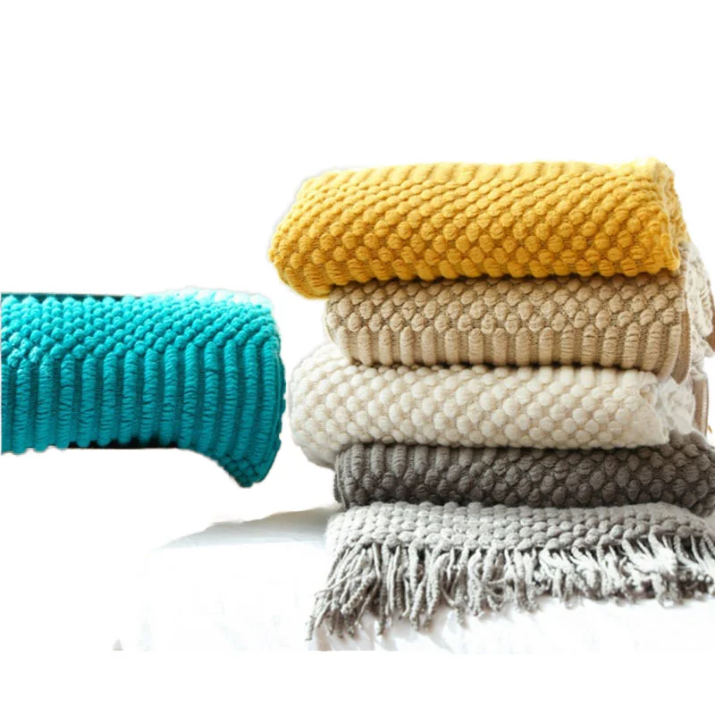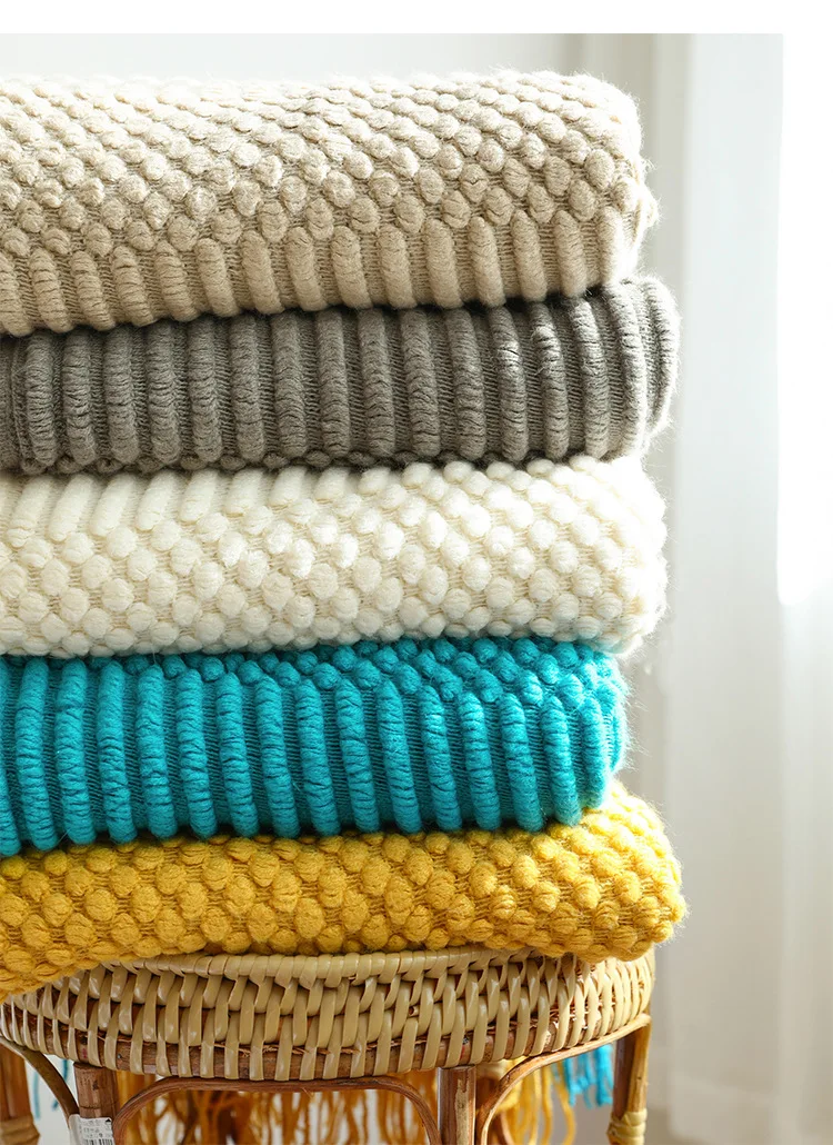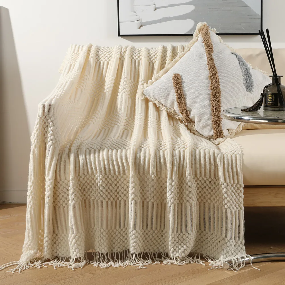Modern Plain Home Decor Customized Soft Dot Knitted Acrylic Throw Blanket with Tassels Eco-Friendly Wholesale Mildness Cozy
