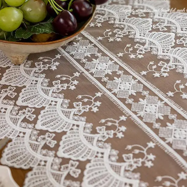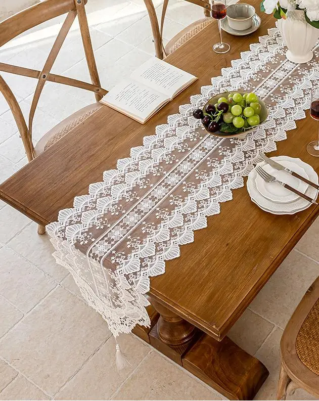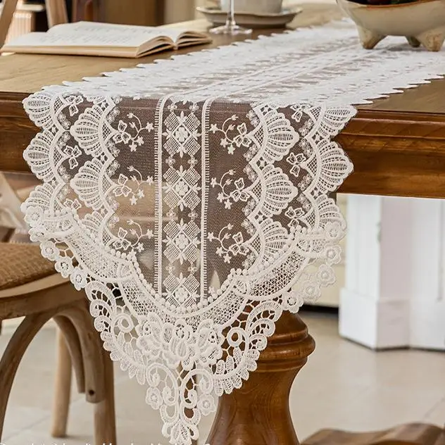 Wholesale Vintage White Household Hollow Lace Table Runner for Home Wedding Elegant Tablecloth Decoration