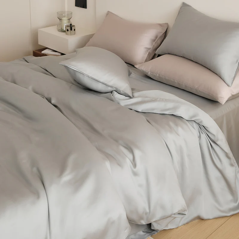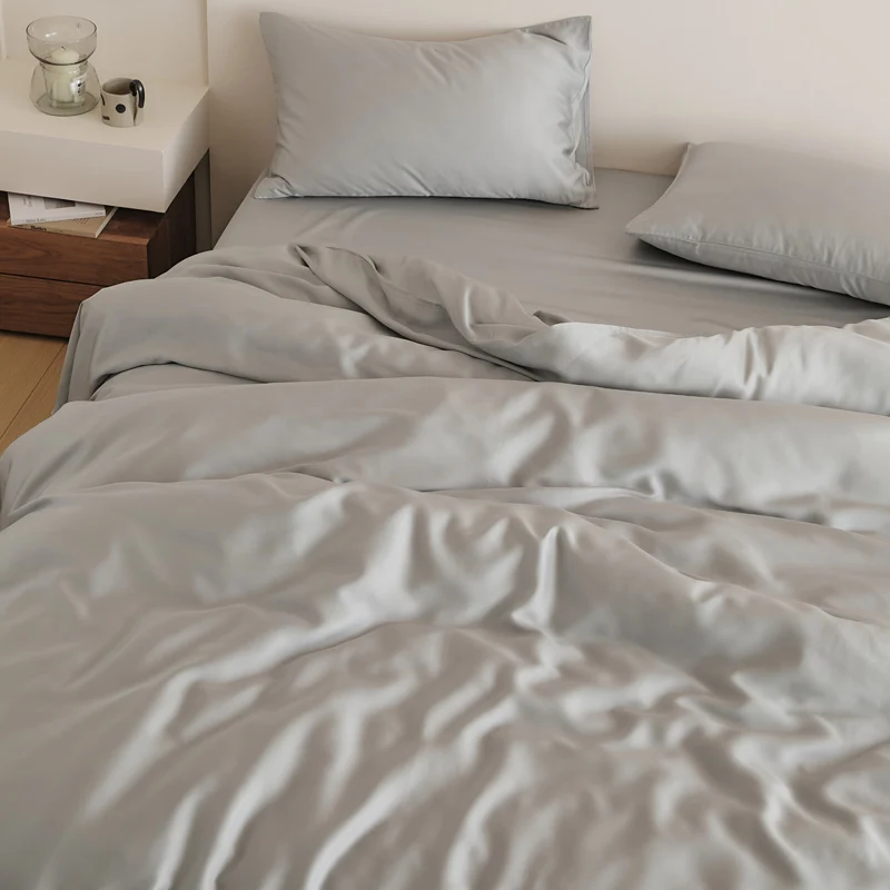 Luxury Eco Friendly 60s Soft Plain Dyed Bedding Sheet Set Duvet Cover Set