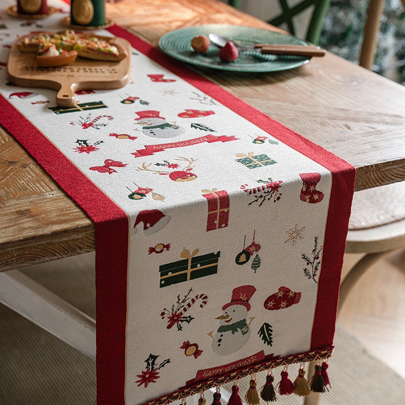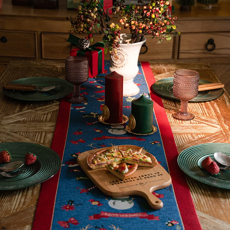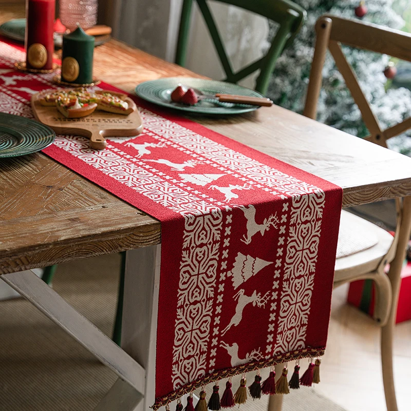 Wholesale Custom Printed Christmas Decoration Cotton and Linen Christmas Table Runners
