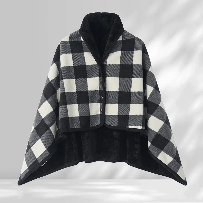 Korea Warm Casual Office Knee Blanket Cape Plaid Printing Polar Fleece Cloak Shawl for Winter Shawl Blanket
