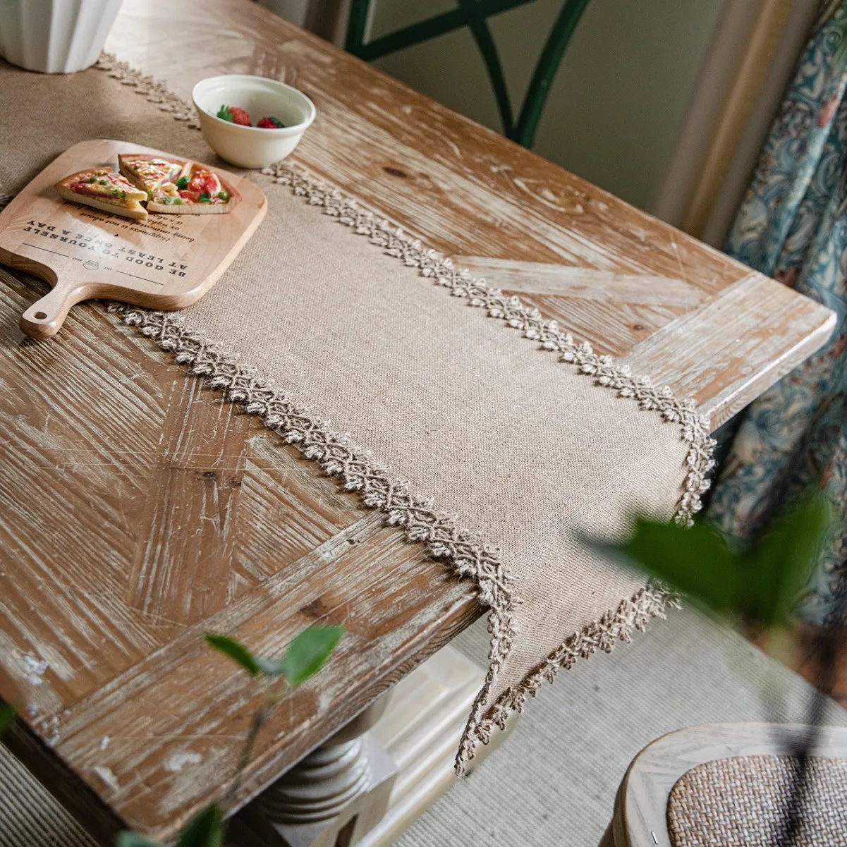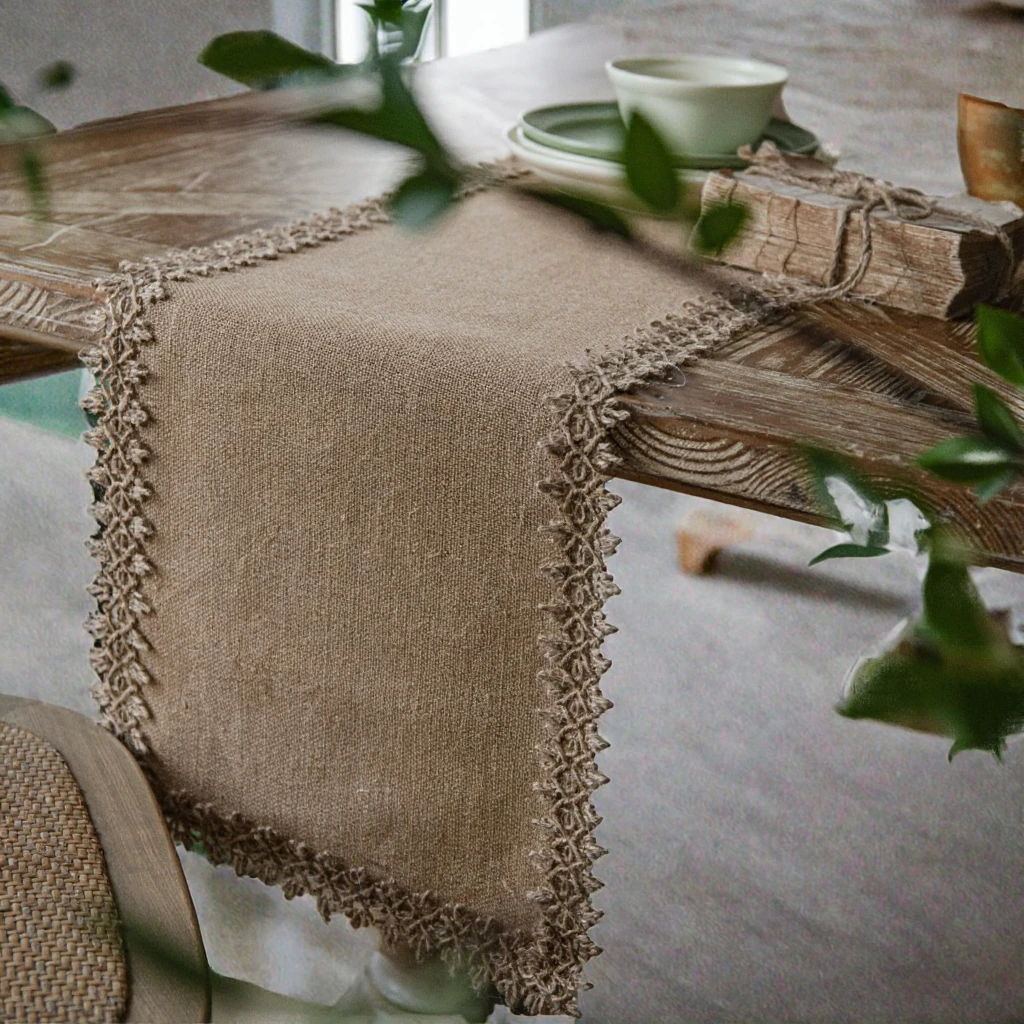 American Japandi Festival Party Decorative Table Flag Simple Striped Pattern Natural Jute Weaving Hallway Cover Towel for Home