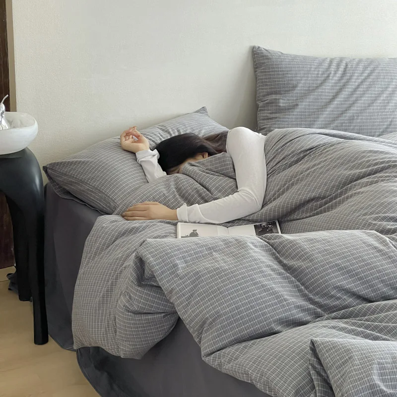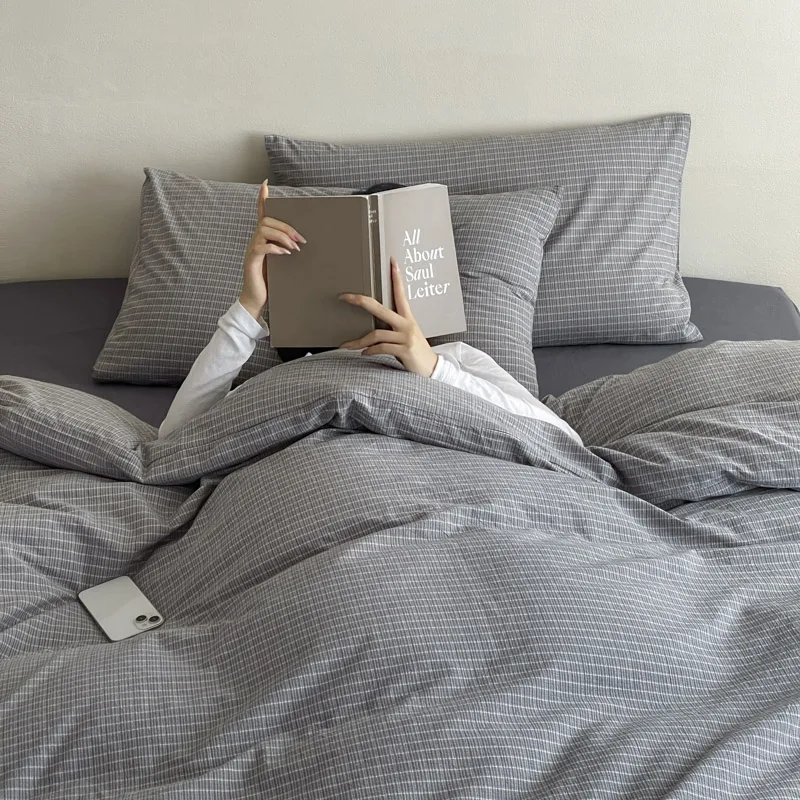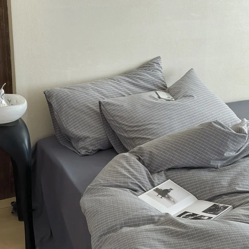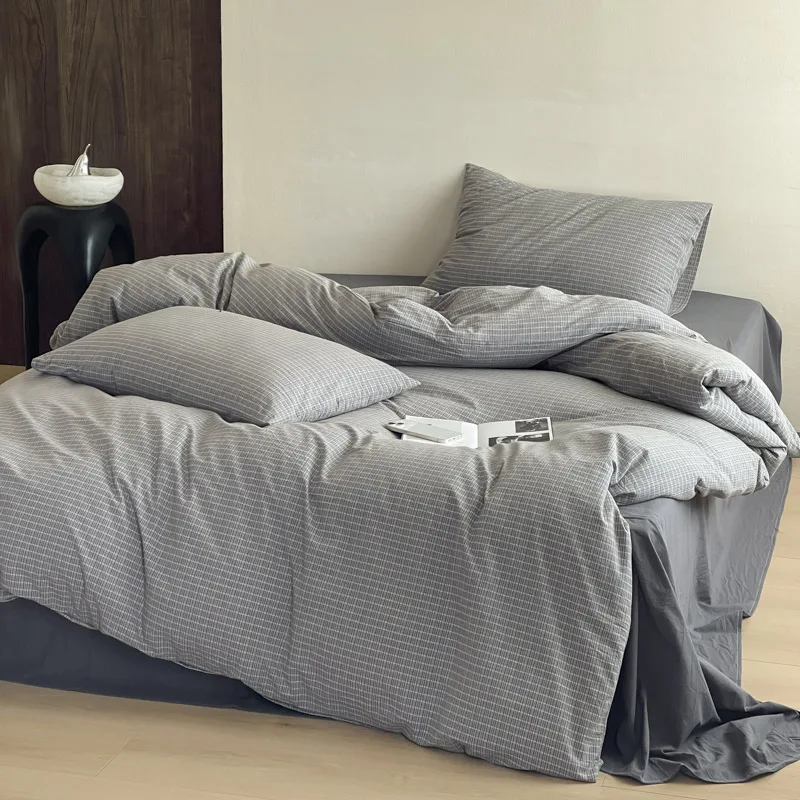 Modern Cotton Comforter Bed Set Simplicity with Woven Plaid Pattern Simple Style Bedding Set