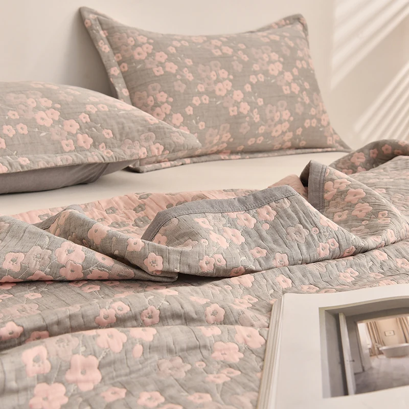 Factory Supply Quilted Floral Coverlet for Bed with Pillowcase Cotton Bedspread Set