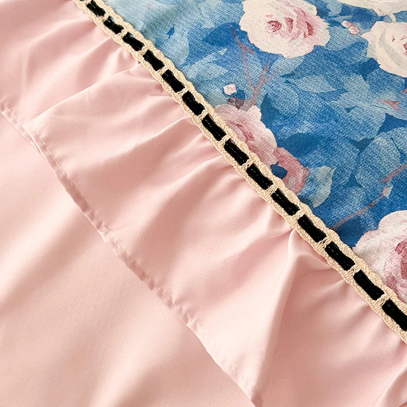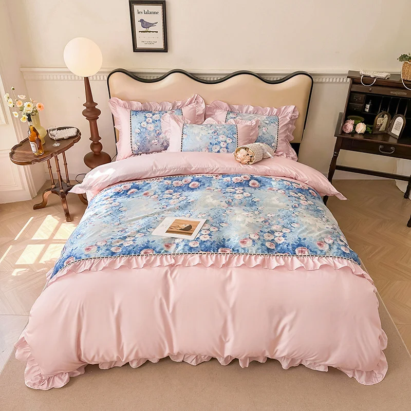 2026 New Collection French Style 100% Polyester Duvet Cover Set Printed Plant Pattern Flat Sheets King Sizes Wholesale for Home