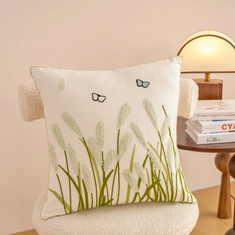 Embroidery Throw Pillow Covers Spring Square Farmhouse Plant Floral Patterns Decoration for Bedroom Sofa