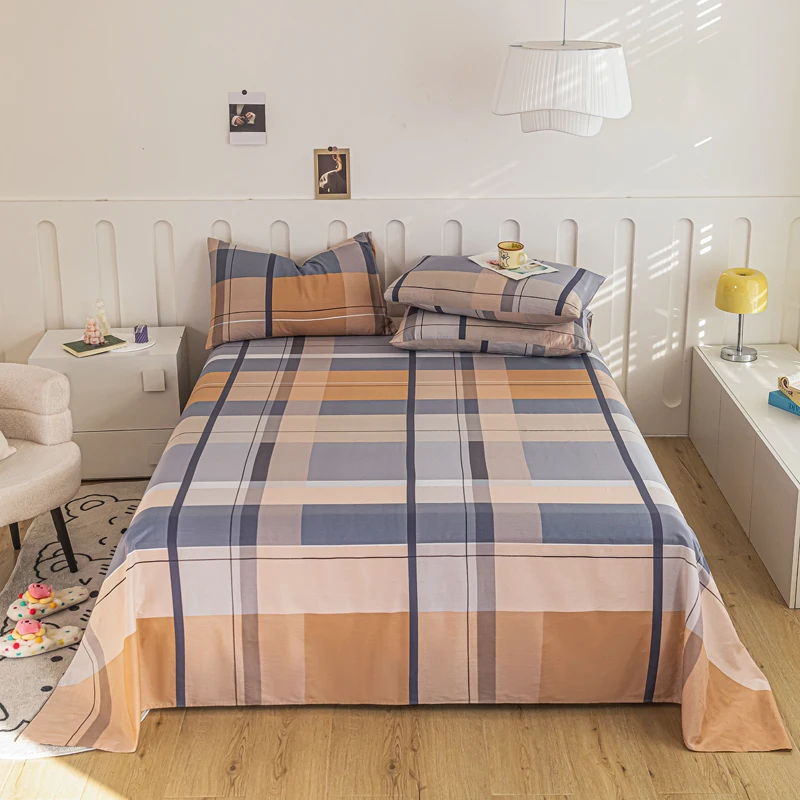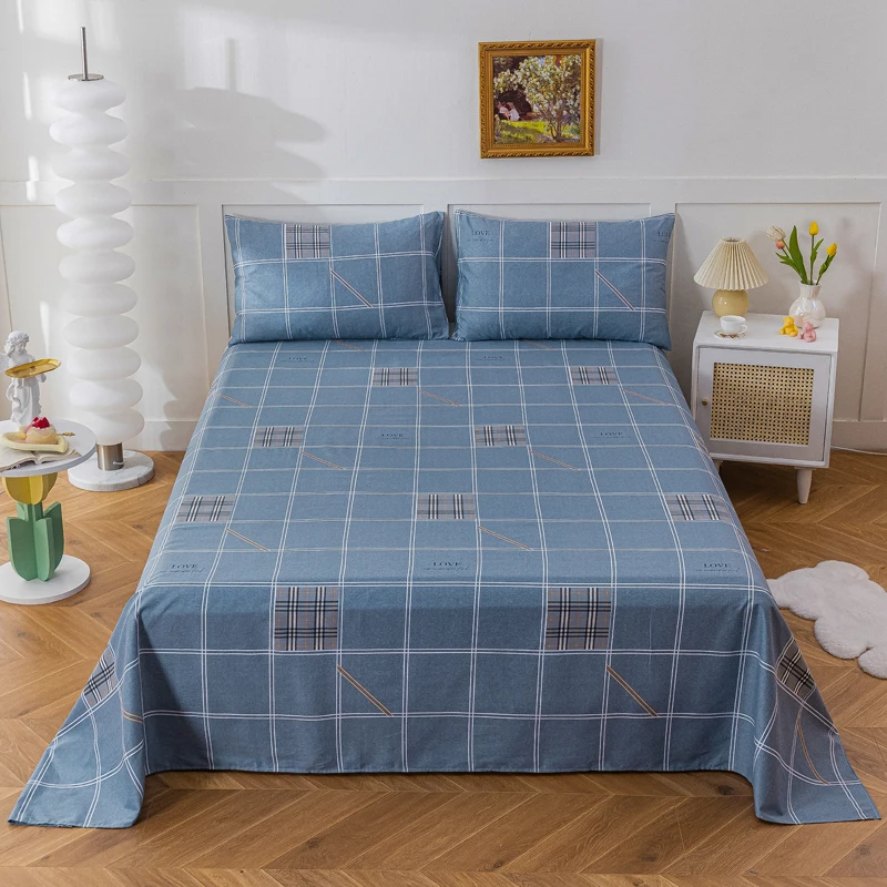 Hot Selling New Frosted Single and Double Student Dormitory Bed Sheets 100% Cotton Bed Sheet Set Printed Flat Bed Sheet