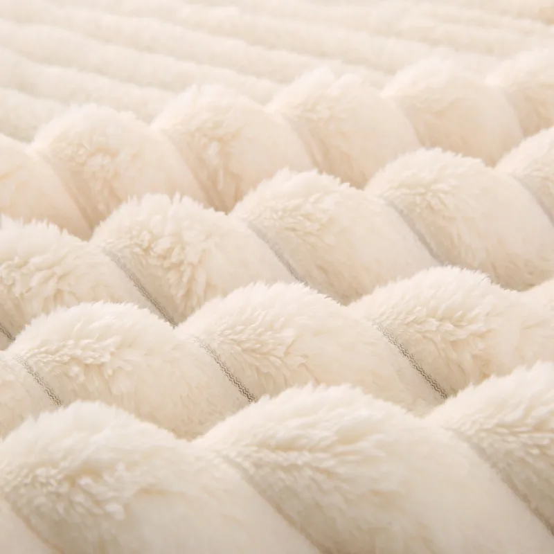 Luxury Knitted Bed Throw Wholesale Fluffy Fuzzy Flannel 100% Polyester Striped Faux Blanket for Home