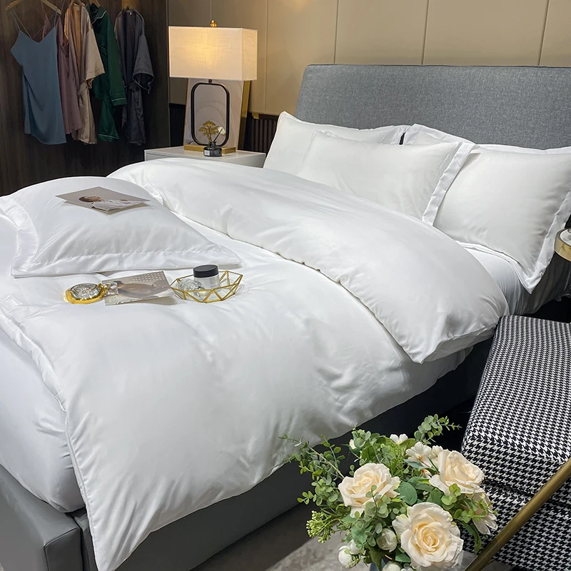 Eco Friendly Luxury Bamboo Fiber Bedding Set 4 Pieces Breathable Bed Linen for Hotel Use