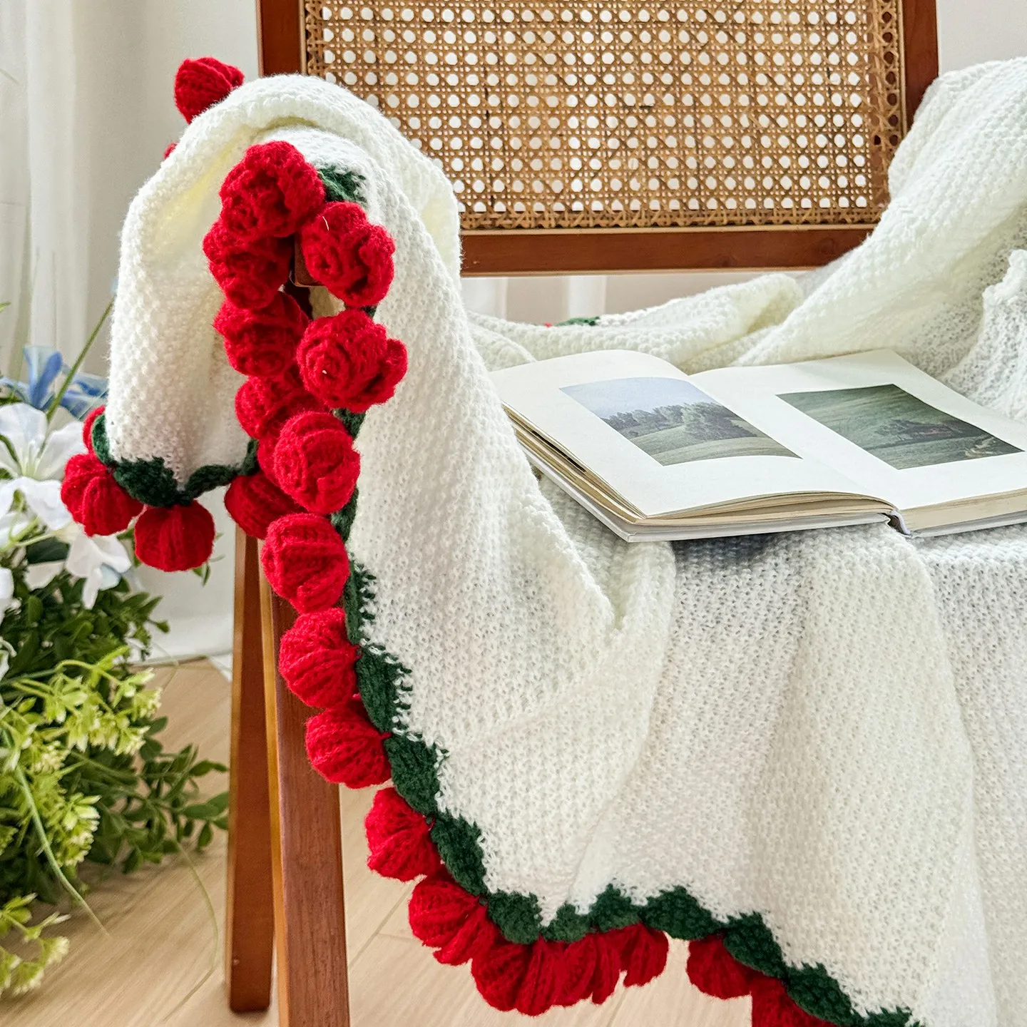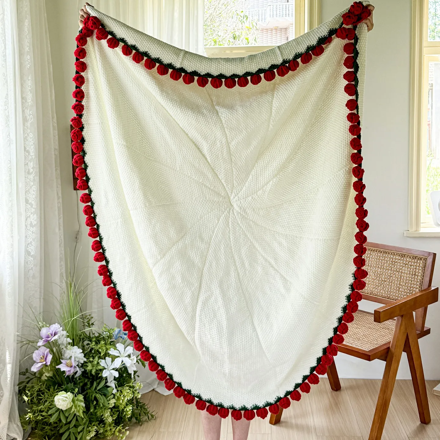 Luxury Handmade Custom Crochet Rose Blanket 100% Polyester Plush Eco-Friendly Comfortable Floral Bouquet Throw for Festivals