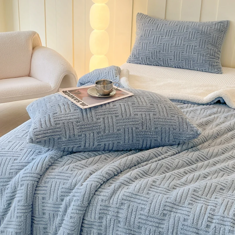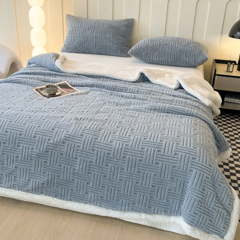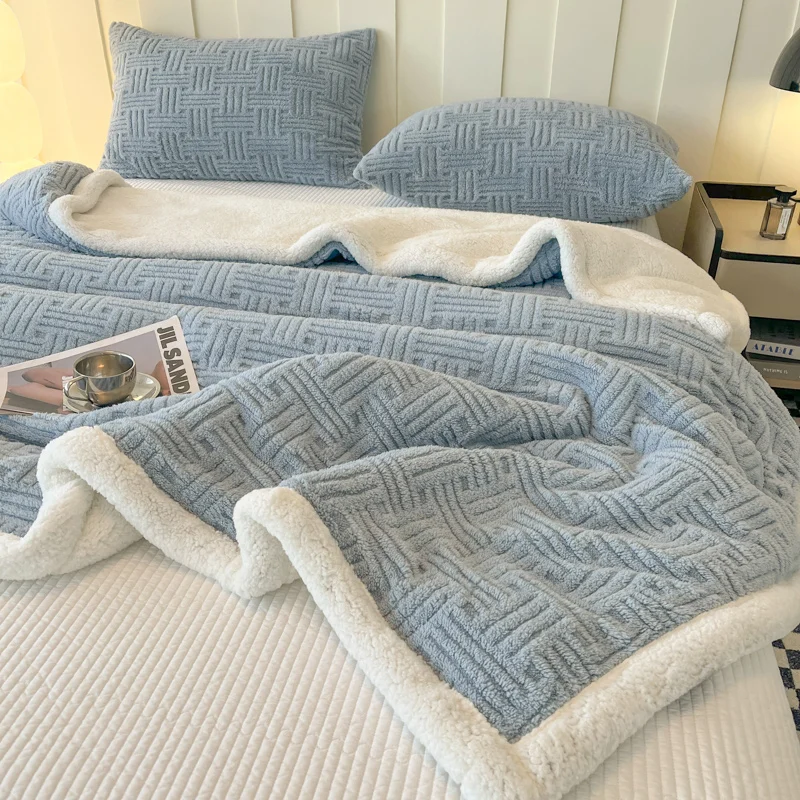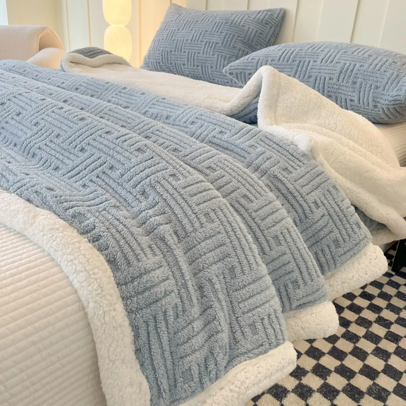 Luxury 100% Polyester Reversible Double Side Extra Thick Soft Fluffy Sherpa Fleece Jacquard Throw Blanket Woven Print Warm