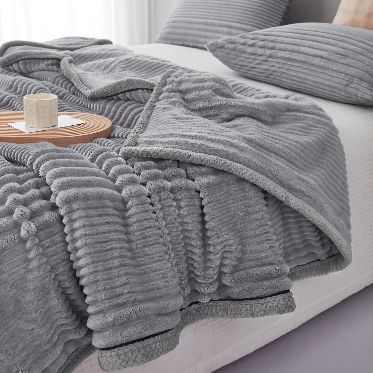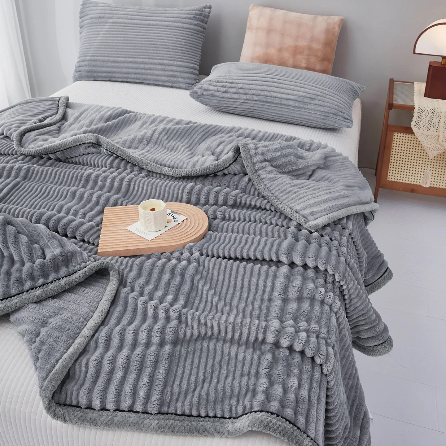 Luxurious All-Seasons Comfortable Faux Rabbit Fur Blanket Durable Polyester Jacquard for Bedding Anti-Pilling Sofa Bedroom