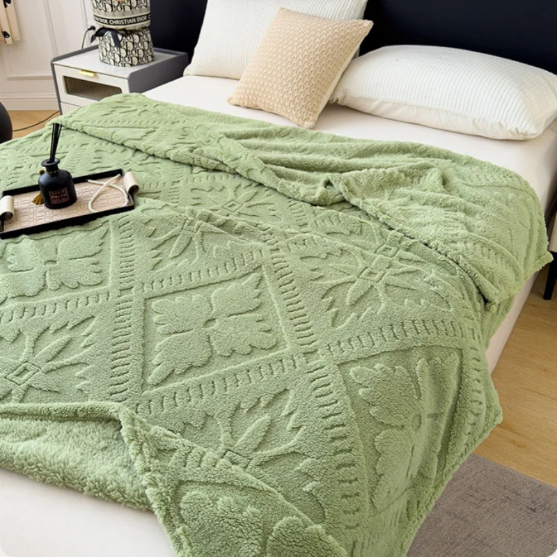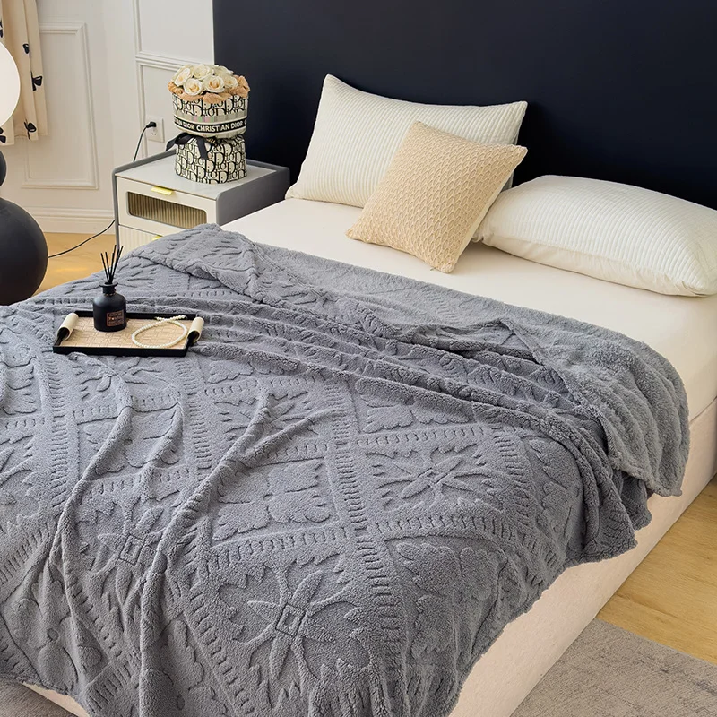 Luxury King Size American Style Jacquard Woven Throw Super Soft Cozy Fleece Blanket for Women Solid Pattern Bedding Home Couch