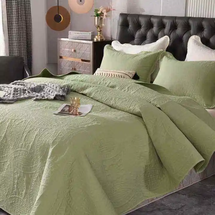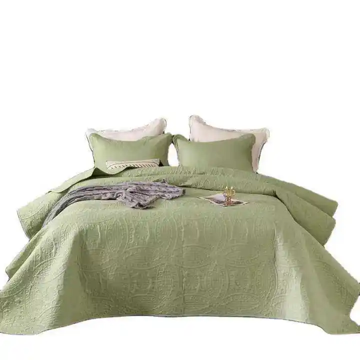European American Style Quality 3 Pcs Bedspread Set Pillowcases Washed Cotton Fabric King Size Quilted 200TC Eco-Friendly