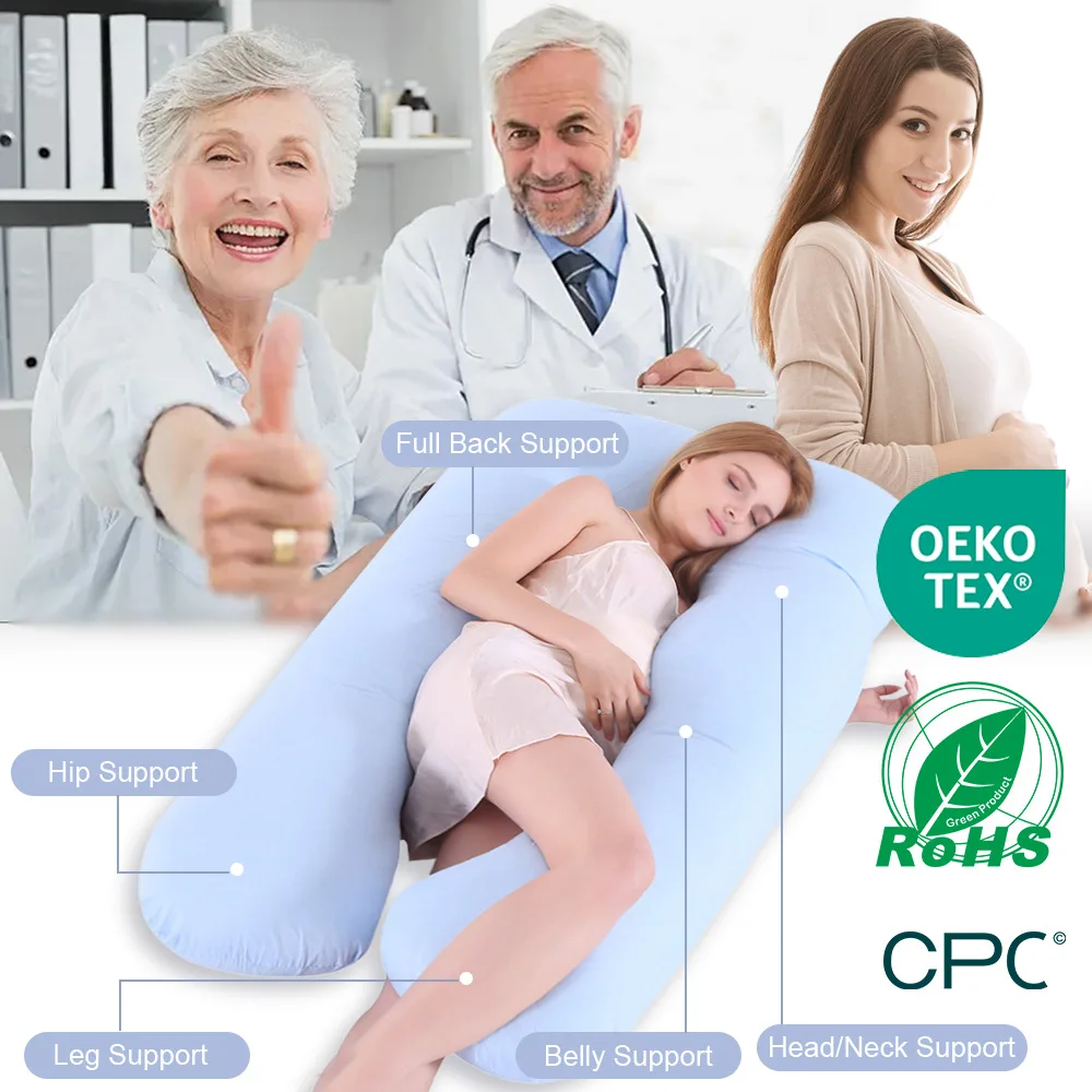 Premium Cotton U-Shaped Body Pregnancy Pillow Multi-Functional Zipper Design Comfortable Bed Sleeping for Home Soft Nursing