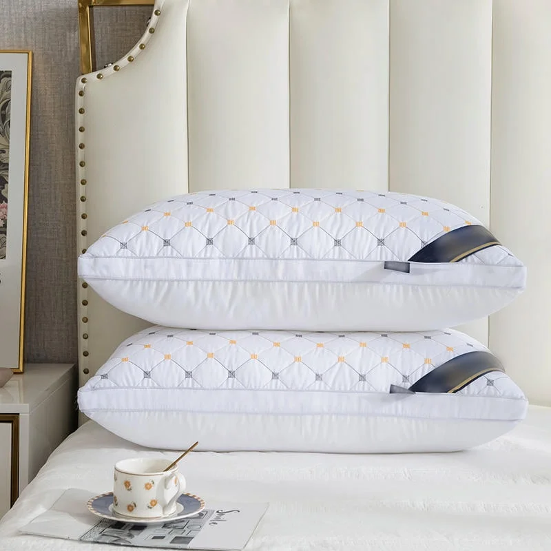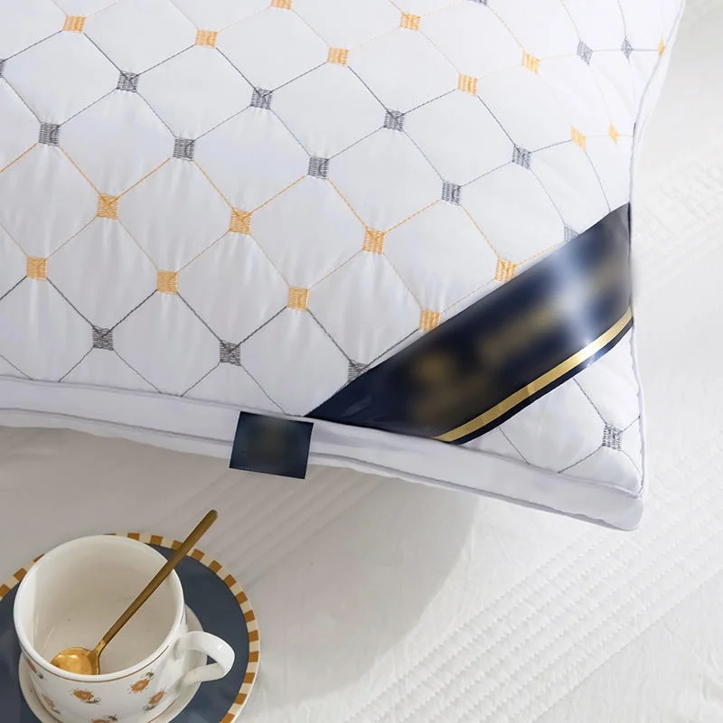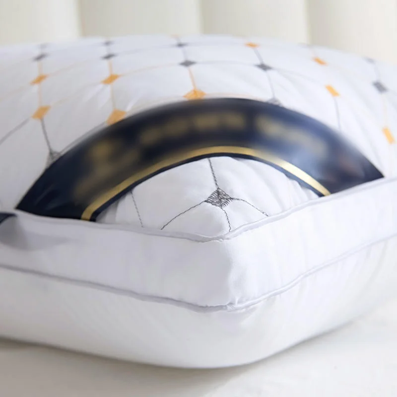 Customize Embroidery Design Solid Pattern Luxury Hotel Bed Pillows High Weight Filling Feather Velvet Neck Pillow for Sleeping