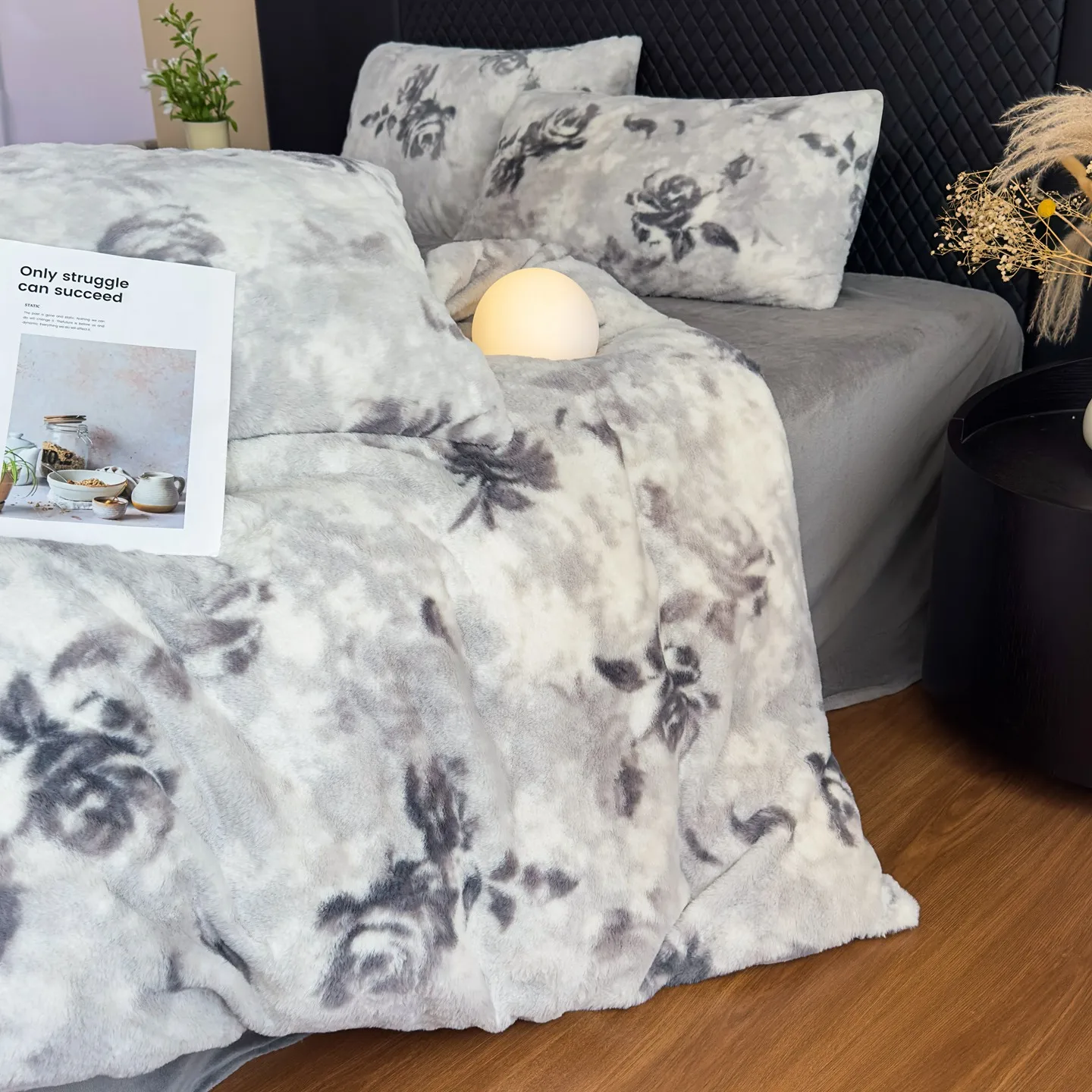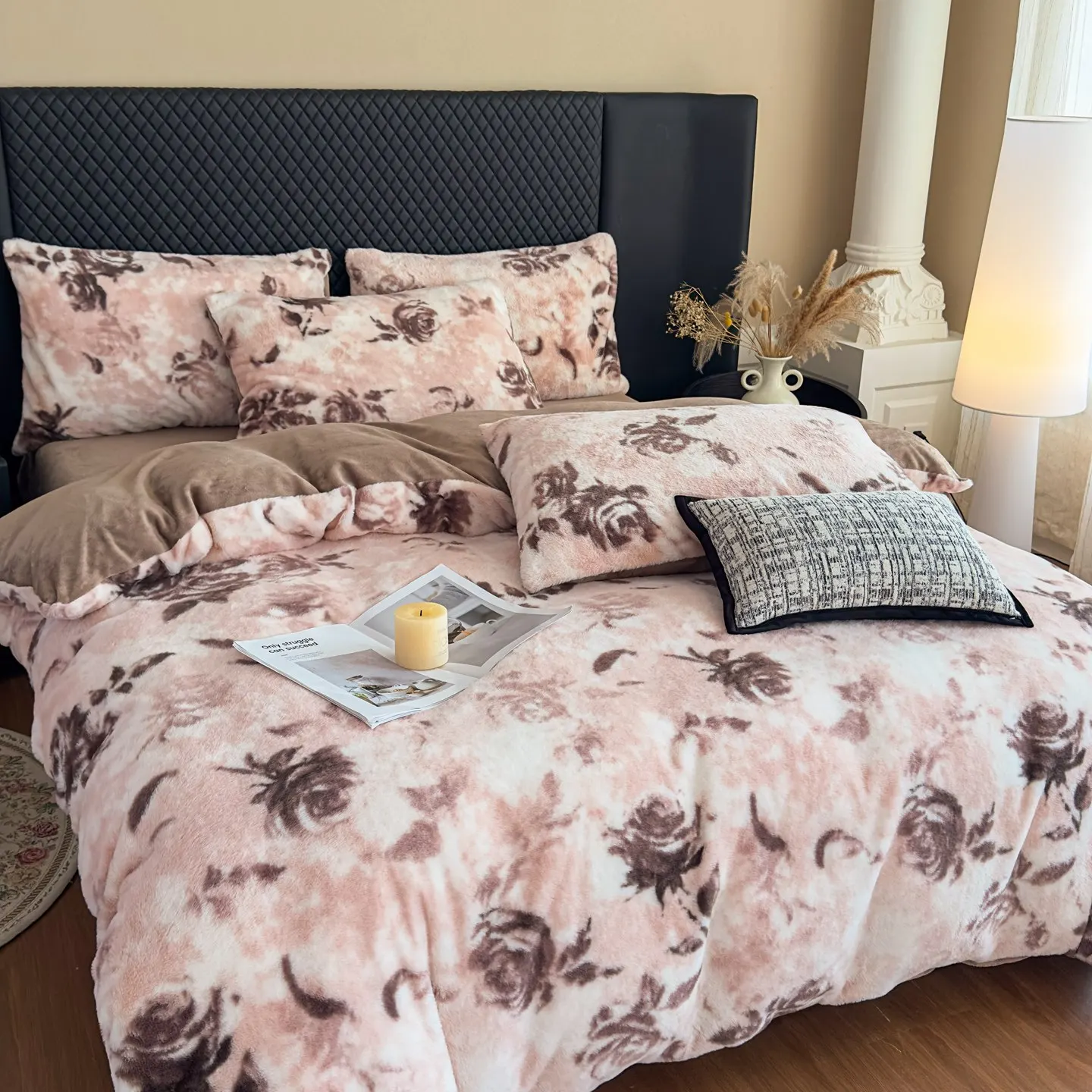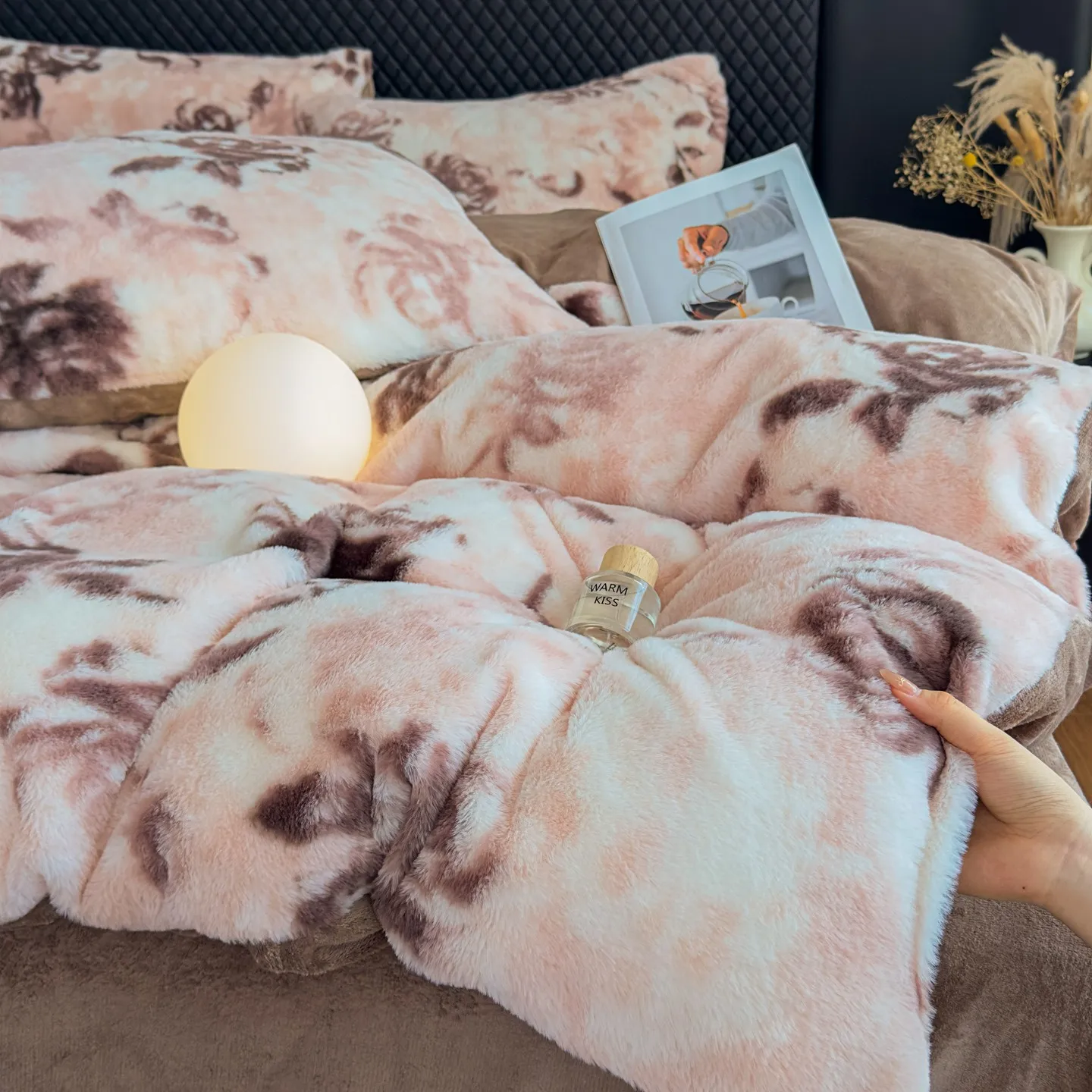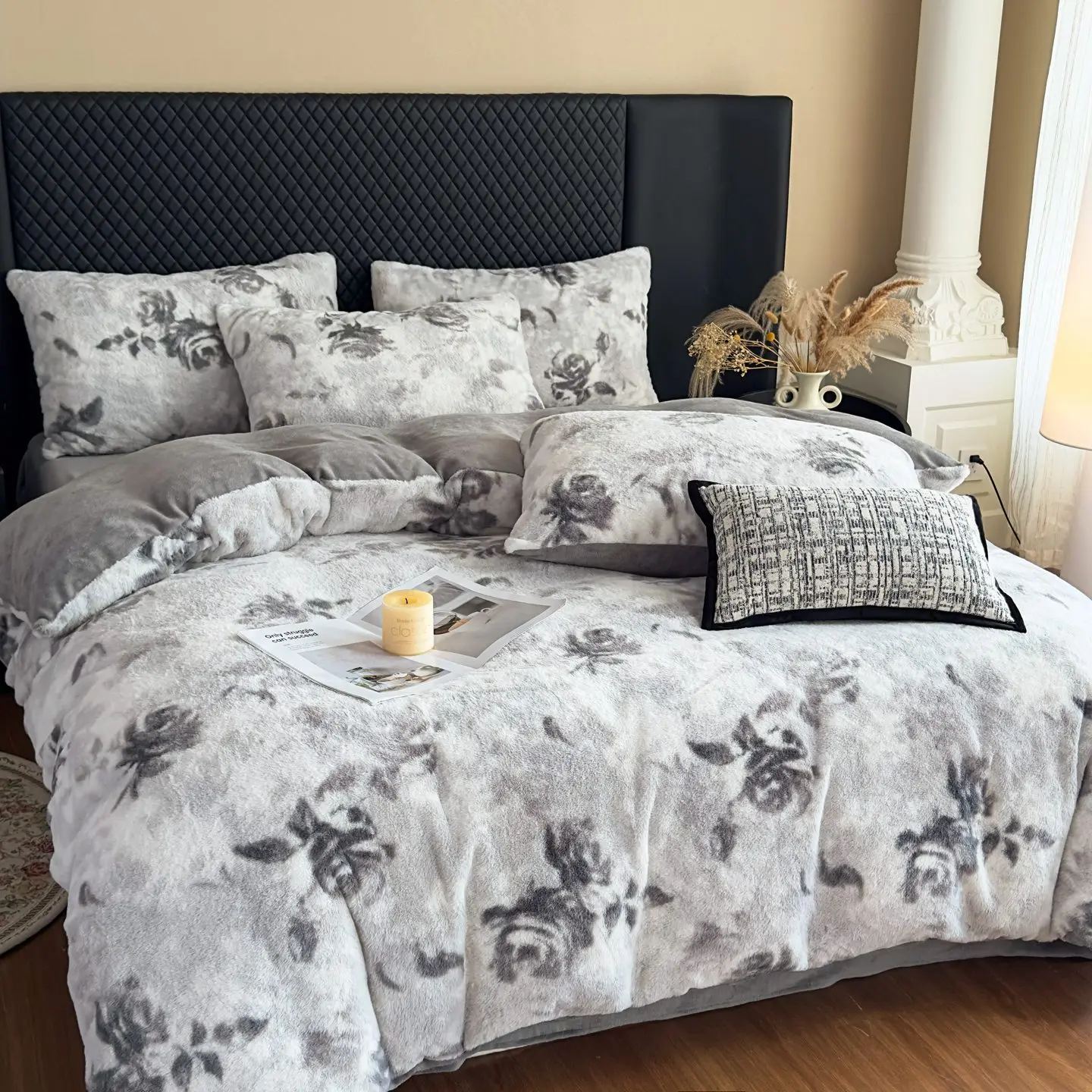 Luxury 3D Thickened Plant Printed Velvet Winter Bedding Set High Weight Rabbit Milk Velvet Duvet Covers Queen/King 4pcs Home Use