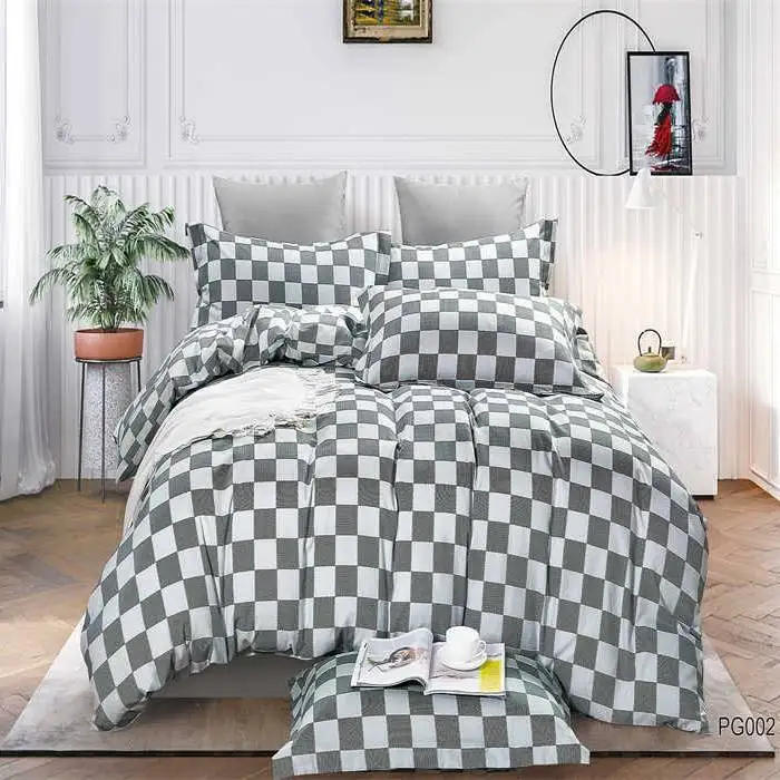 Luxury Woven Checkerboard King Duvet Cover Bedding Set 100% Polyester Fabric Soft Comfortable Modern 200TC All-Season for Home