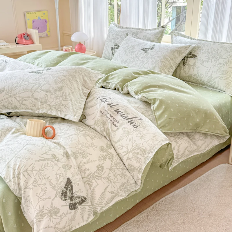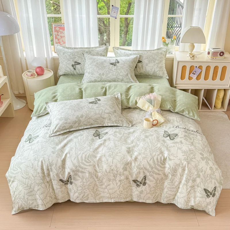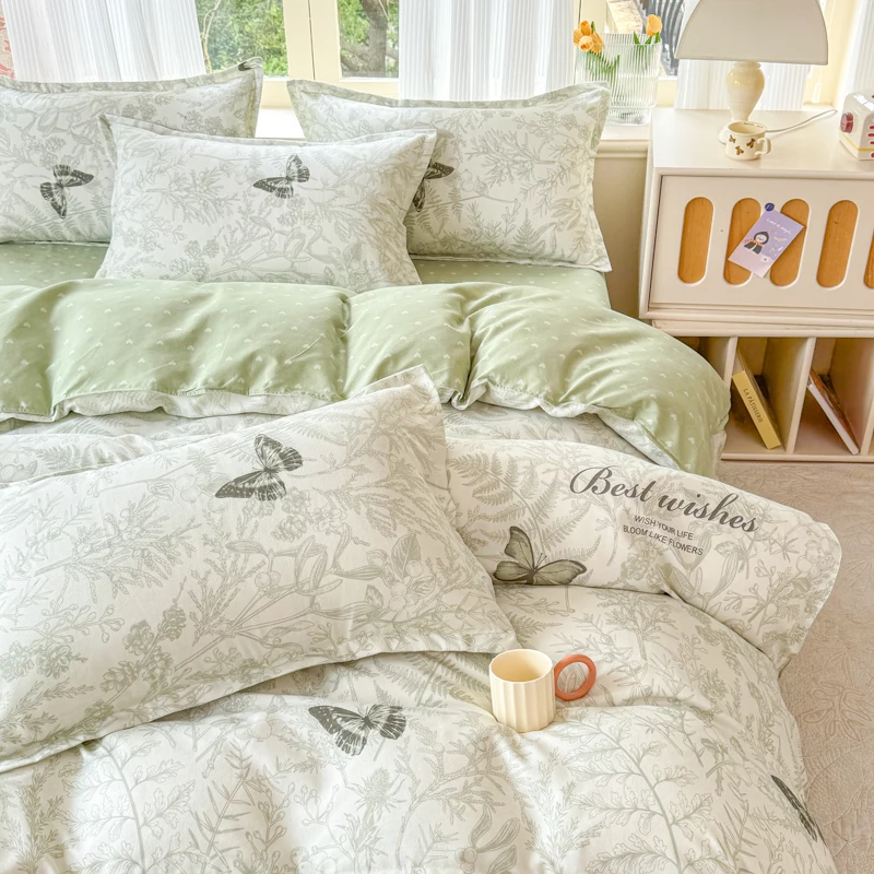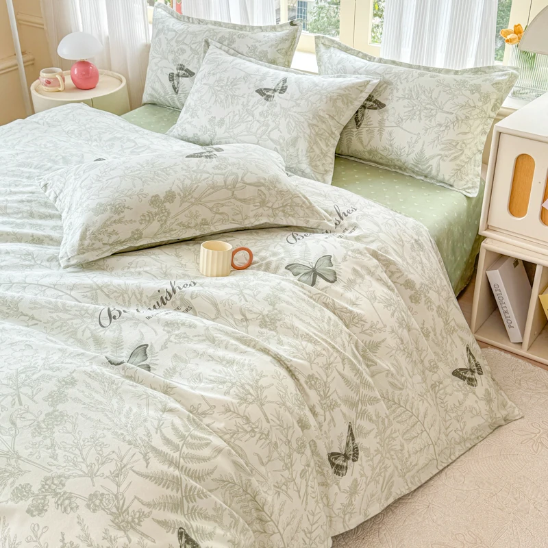 Soft Breathable 100% Polyester Woven Light Luxury Duvet Cover Set Plant Printed Floral Design Eco-Friendly Home Bedding Sets