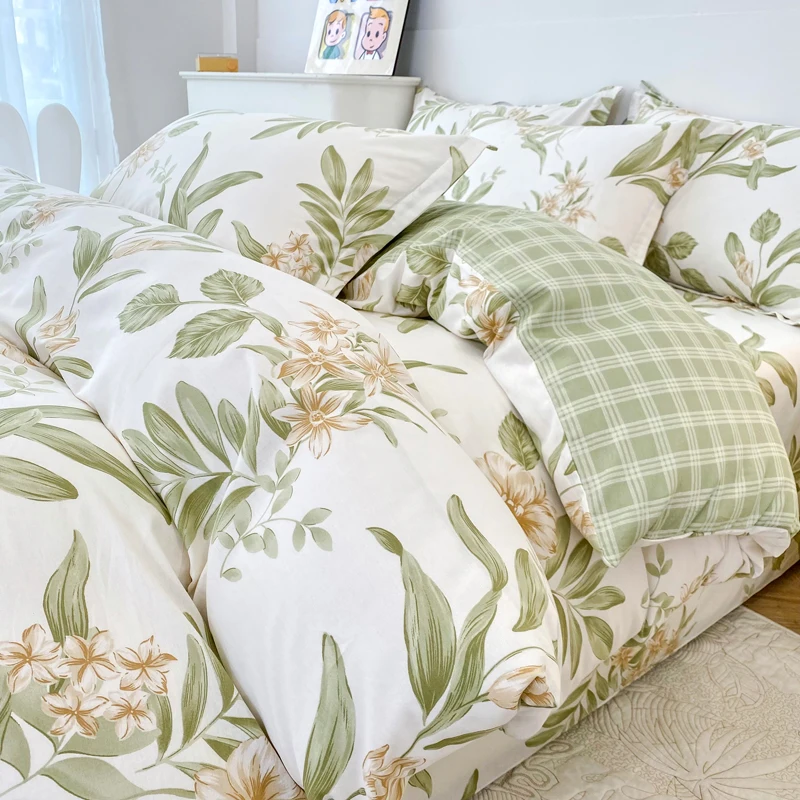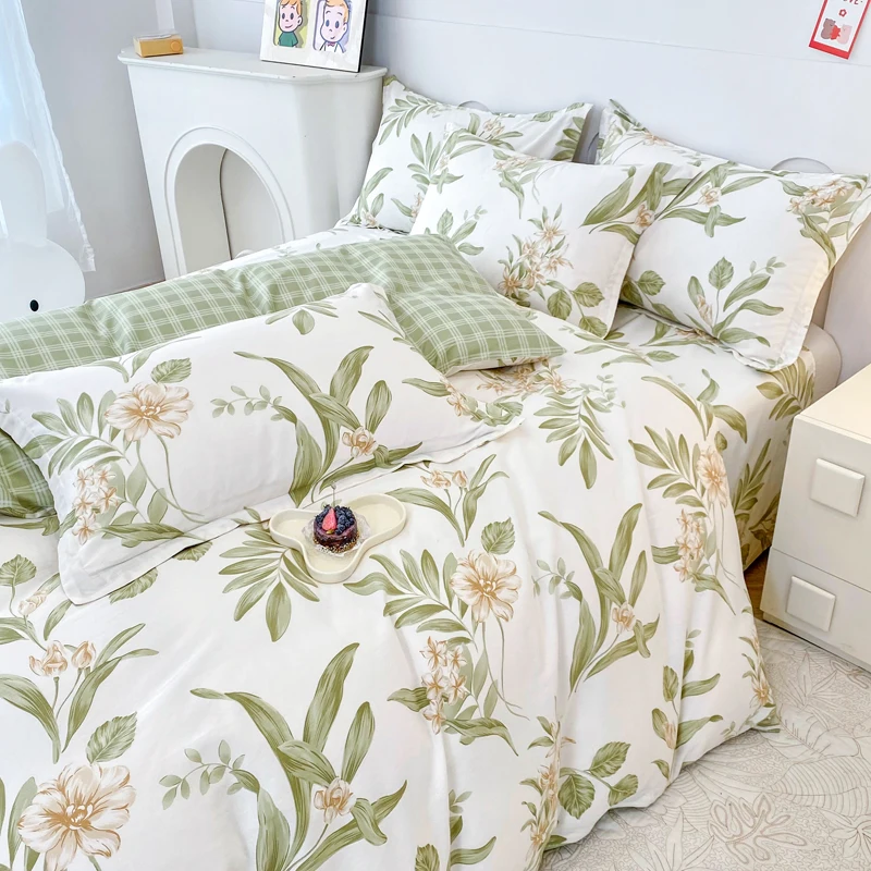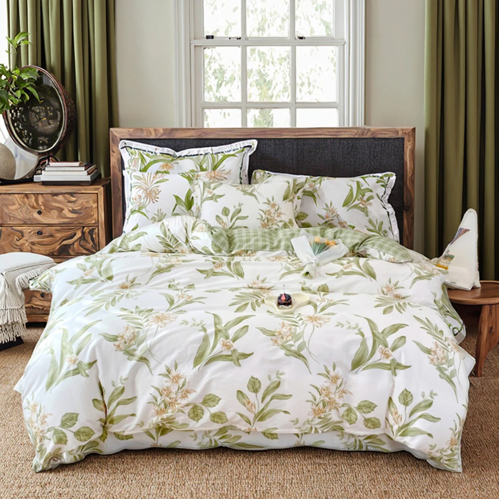 Luxury Modern 100% Cotton Designer Bedding Set Customized Spring Floral Digital Print Quilt Cover Bed Sheet Pillowcase for Home
