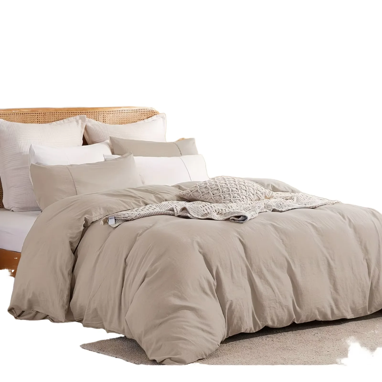 100% Bamboo Fiber Woven Modern Solid Color Bedding Set Super King Size Includes Flat Bed Sheet Fitted Duvet Cover