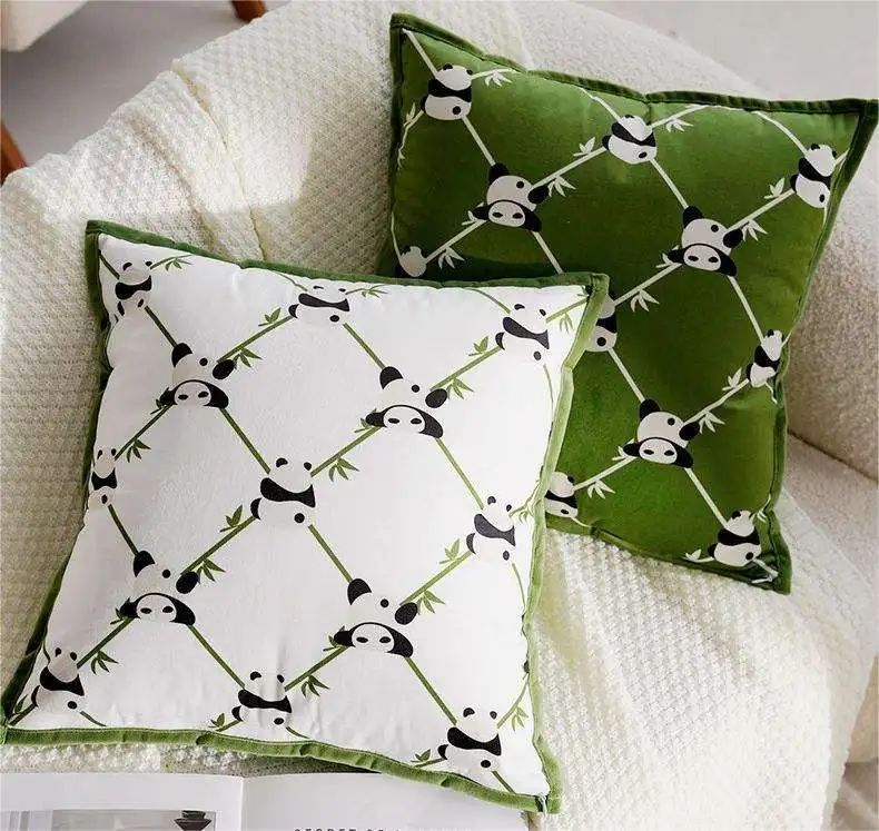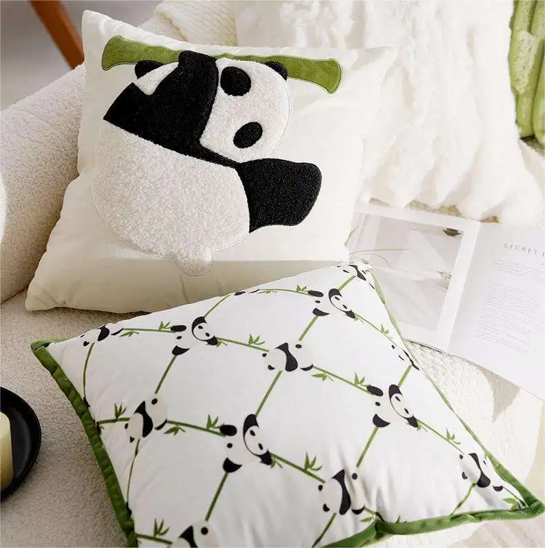 Custom Panda Pillow Cover Square 100% Polyester Modern Geometric Design Natural Theme Home & Hotel Decor Pillow Case