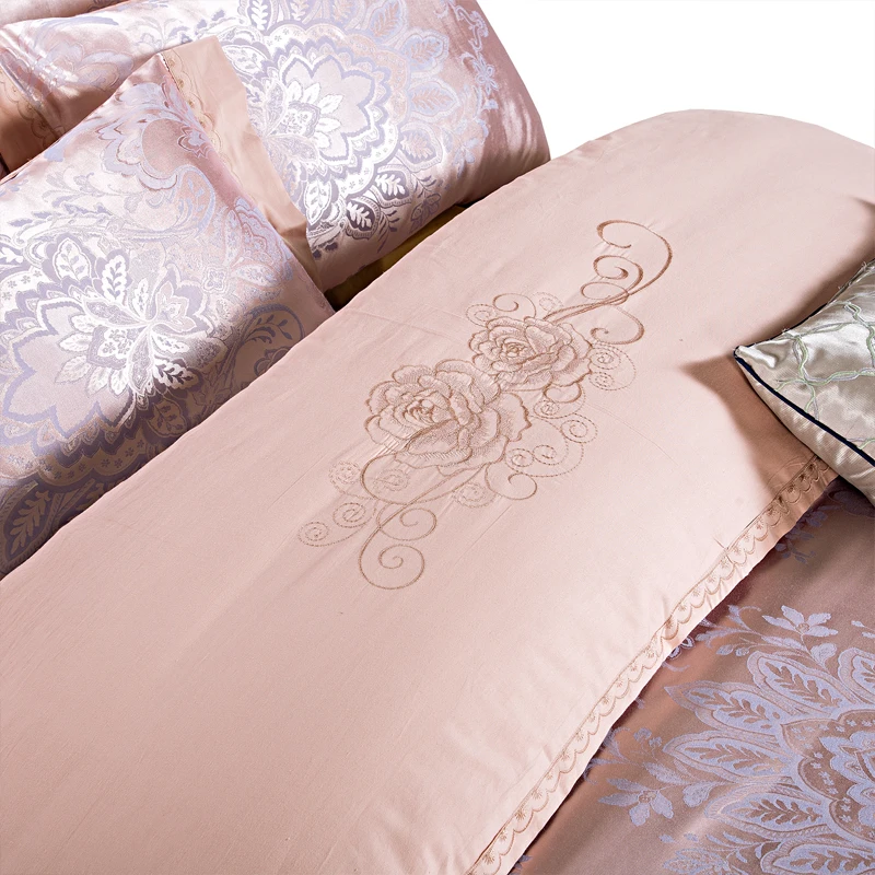 High-End Embroidery Duvet Cover Pillowcase Bed Sheet Luxury Soft Jacquard Cotton Wedding Bedding Set for Queen King Size