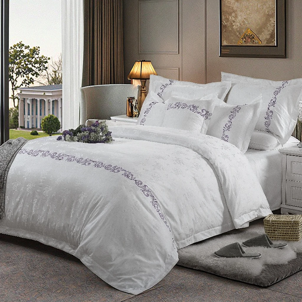 Professional Supplier's Luxury 100% Cotton 400TC Embroidered Bedding Set Queen Flat Sheet Adults Customizable Hotels Homes Plain