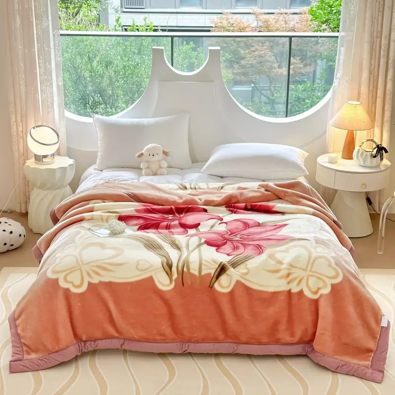 Wholesale Double Thick Chunky Soft Bed Sofa Turkish Home Blanket Custom Warm Luxury Heavy Raschel Blankets for Winter Queen Size