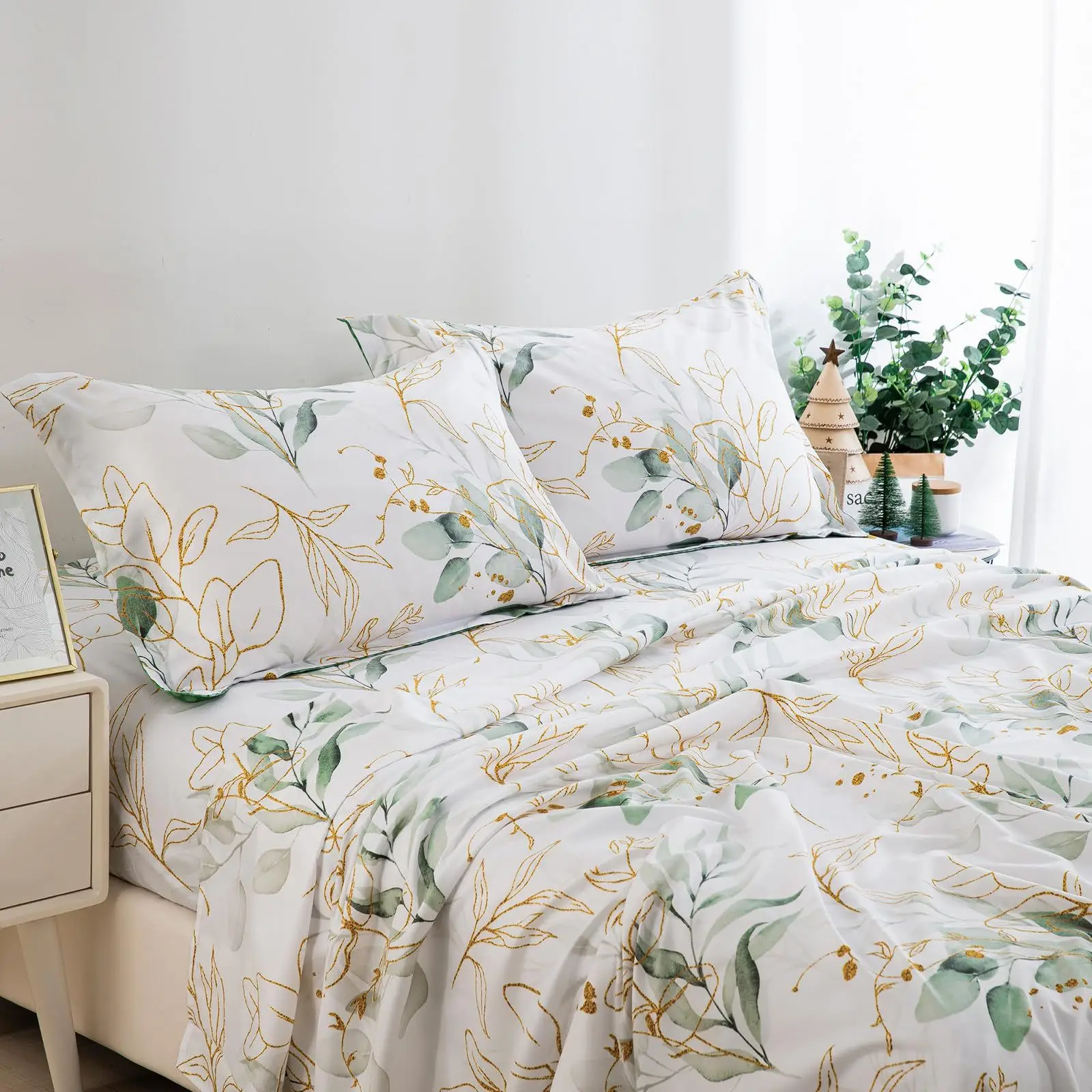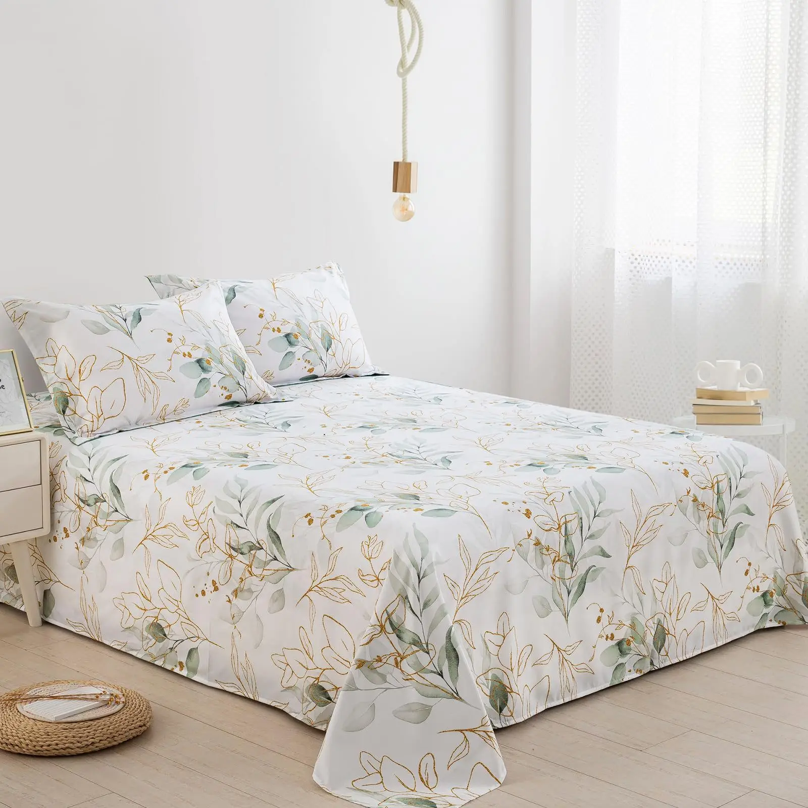 Luxury Modern Floral Printed 4pcs Bed Sheet Set Soft King Size Breathable Flat Bed Sheet Fitted Sheet with Two Pillowcases