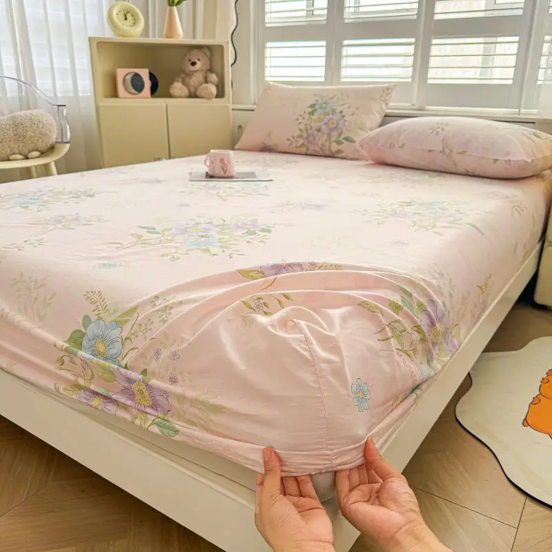 Factory Wholesale 100% Cotton Bed Sheets 3PCS Printed Fitted Sheet Sets Elastic Bedding for Home Hotel Single Double Queen King