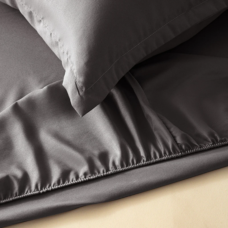 100% Bamboo Fiber Woven Modern Solid Color Bedding Set Super King Size Includes Flat Bed Sheet Fitted Duvet Cover