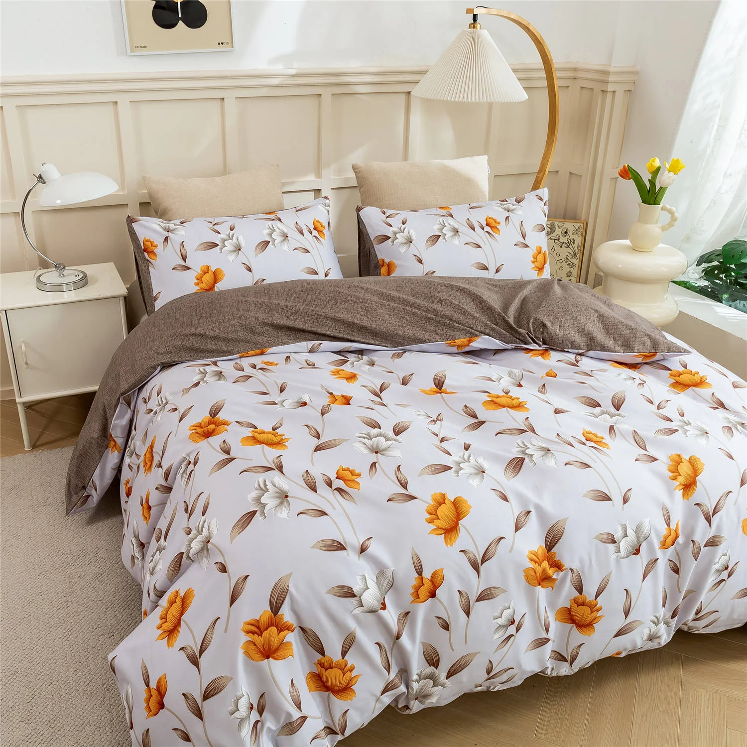 European American Style Three-Piece Duvet Cover Set Home Textile Bed Sheet Plant Flower Printed Polyester Fabric Bedding