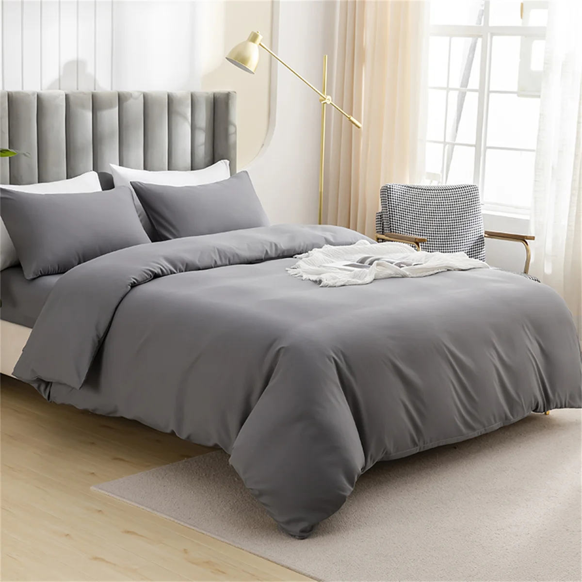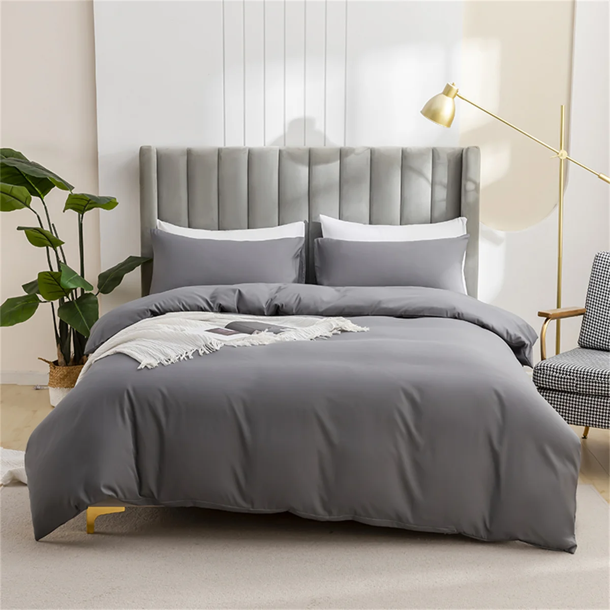 Luxurious 3-Piece Solid Color Brushed Bedding Set Duvet Cover Pillowcases Home Use Available King Queen Twin Printed Adults
