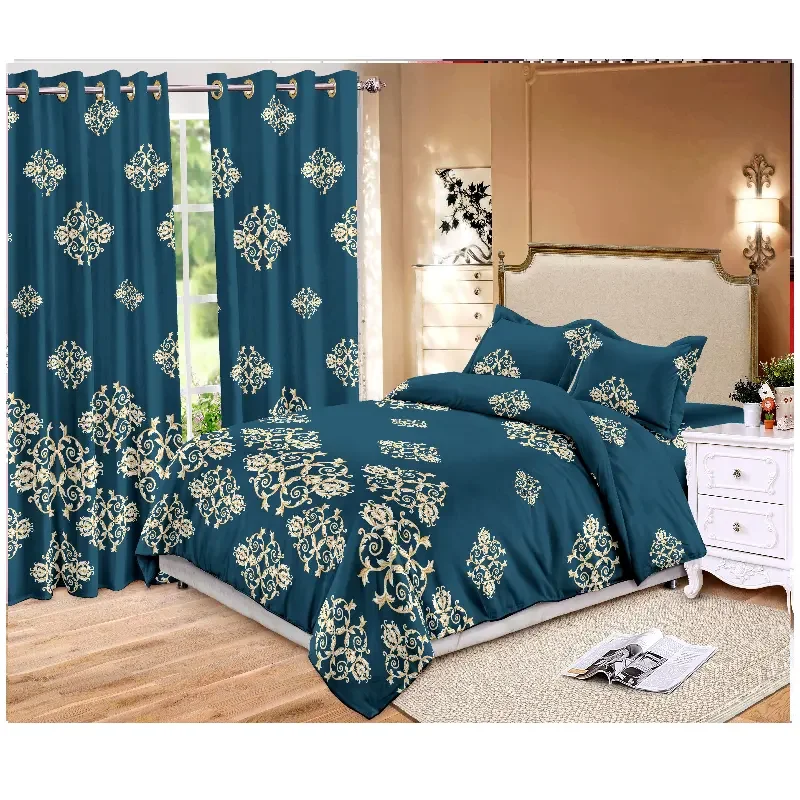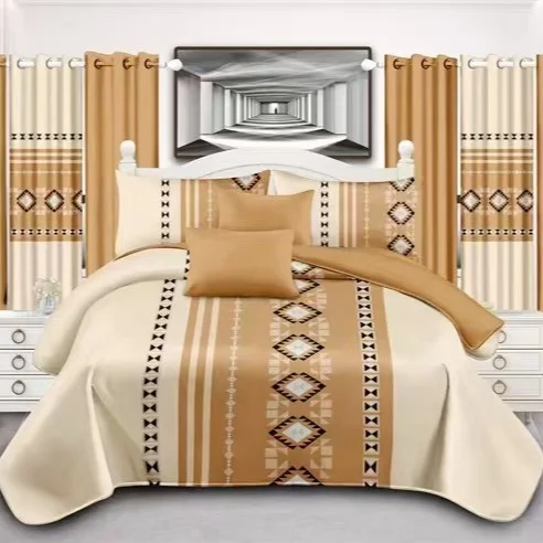 Luxury 12-Piece European and American Style Bedding and Curtain Set King Size Quilt Bedspread and Fitted Bed Sheets Wholesale