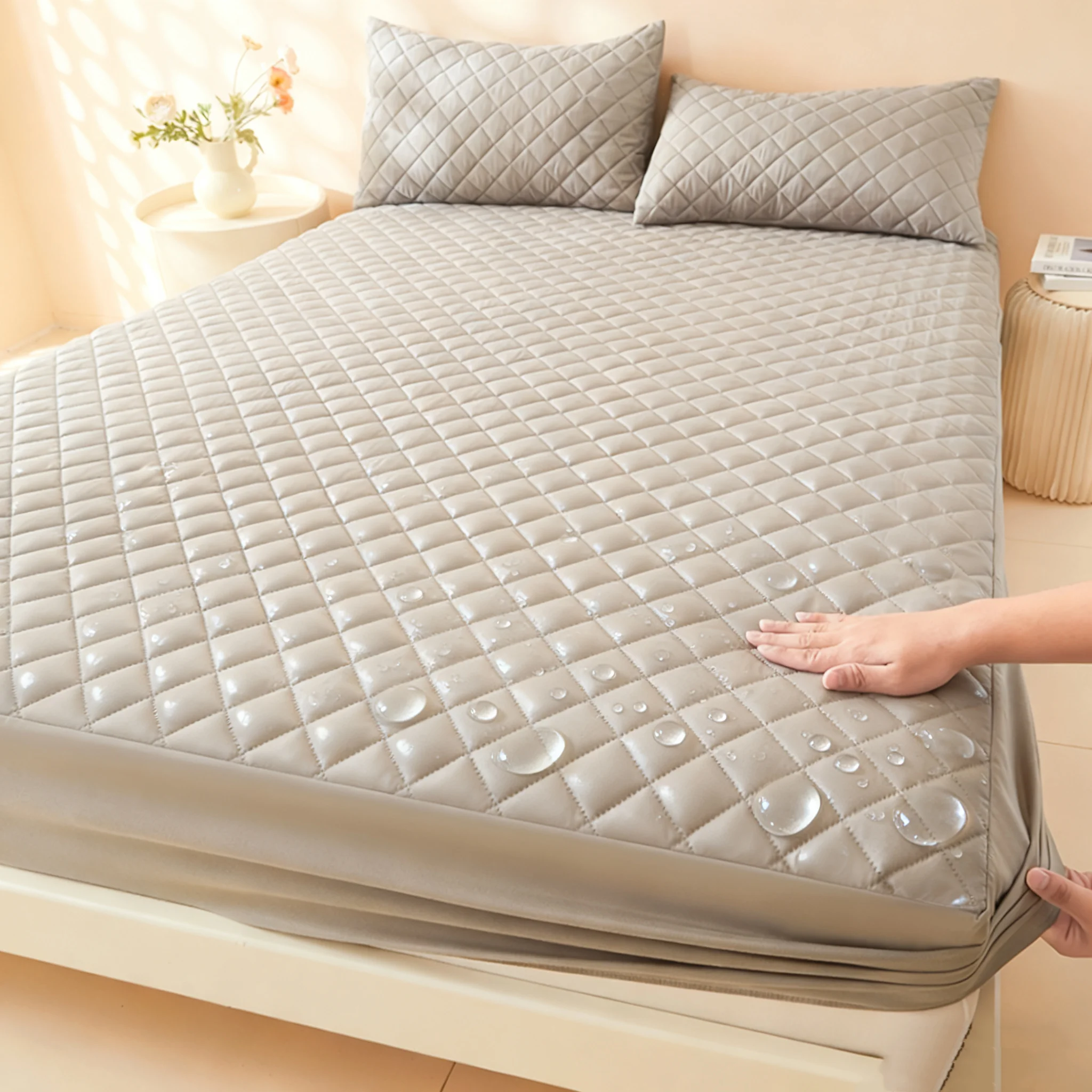 Customized Waterproof Mattress Pad Quilted Breathable Mattress Bed Cover Protector Soft Brushed Microfiber Fabric Fitted Sheet