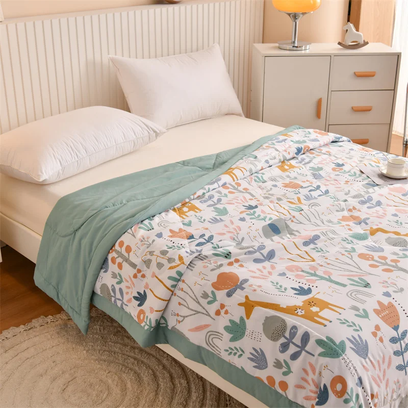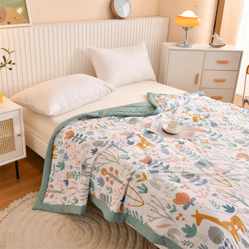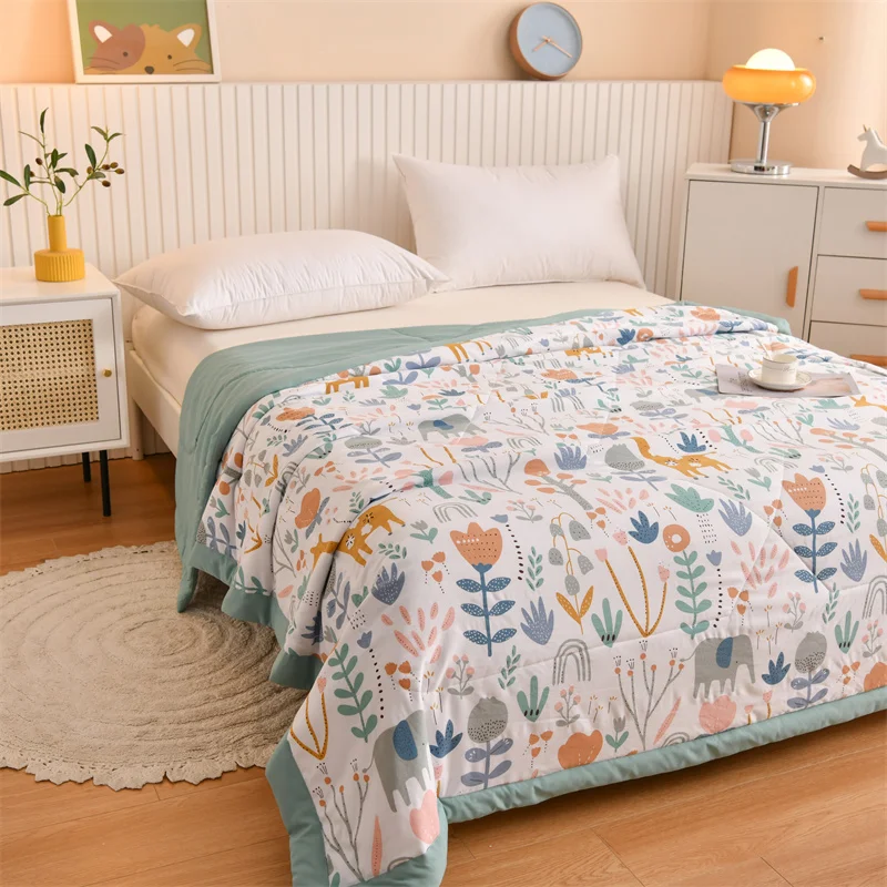 Best Selling Single Washed Cotton Quilt for Summer Air Conditioning Colorful Flower Print Duvet for Hotel Bedding Washable