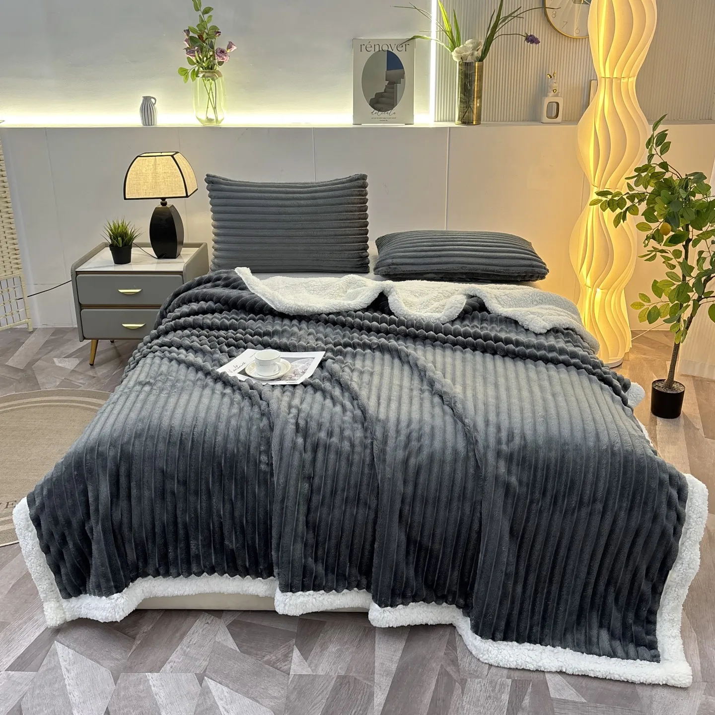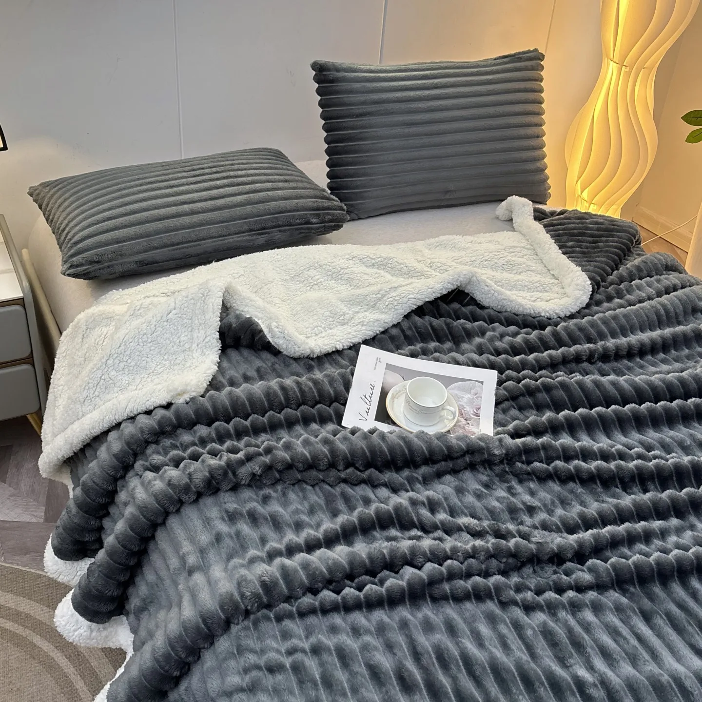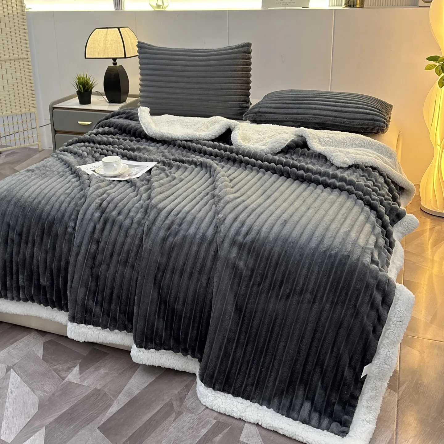 Wholesale Thickened Jacquard Fleece 100% Polyester Soft Throw Blanket Cozy Warm Plain Color Flannel Throws Blankets for Couch