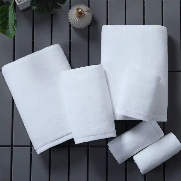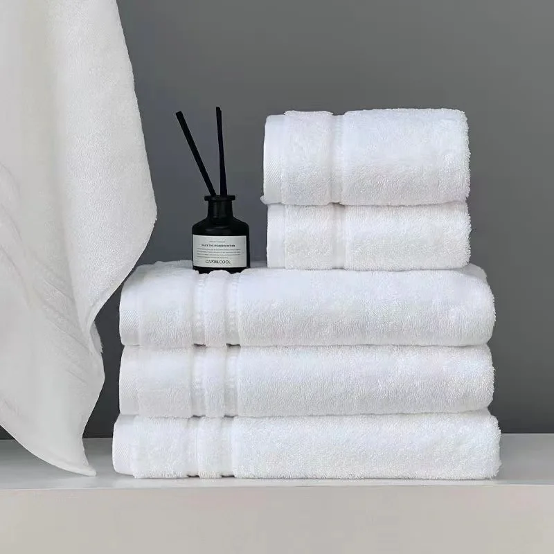 Premium 100% Cotton Hotel Towel Set - High Absorbency, Custom Brand Logo, White Bath & Hand Towels for 5 Star Hotels