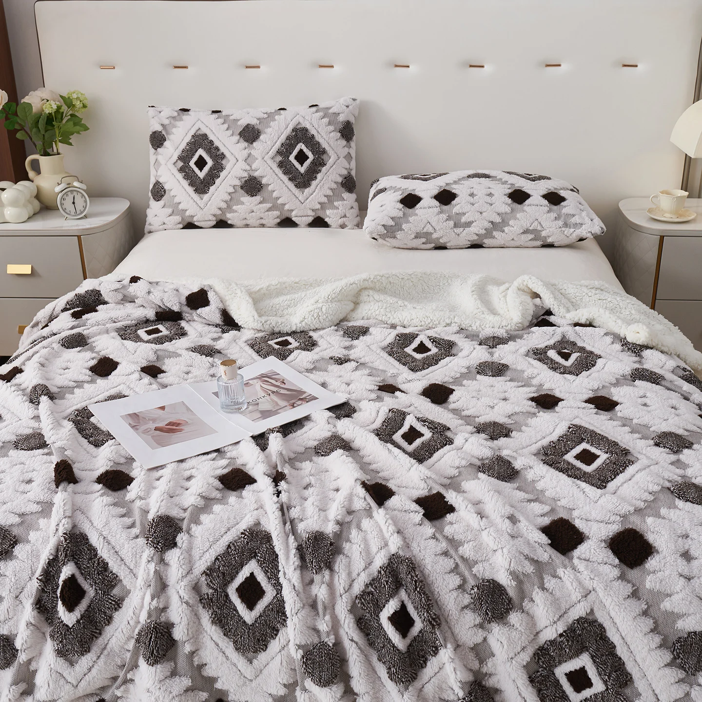 New Design Luxury Sherpa Jacquard Pattern Woven Throw Blanket Bohemian Eco-Friendly All Seasons Bedroom Living Room Sofa Travel