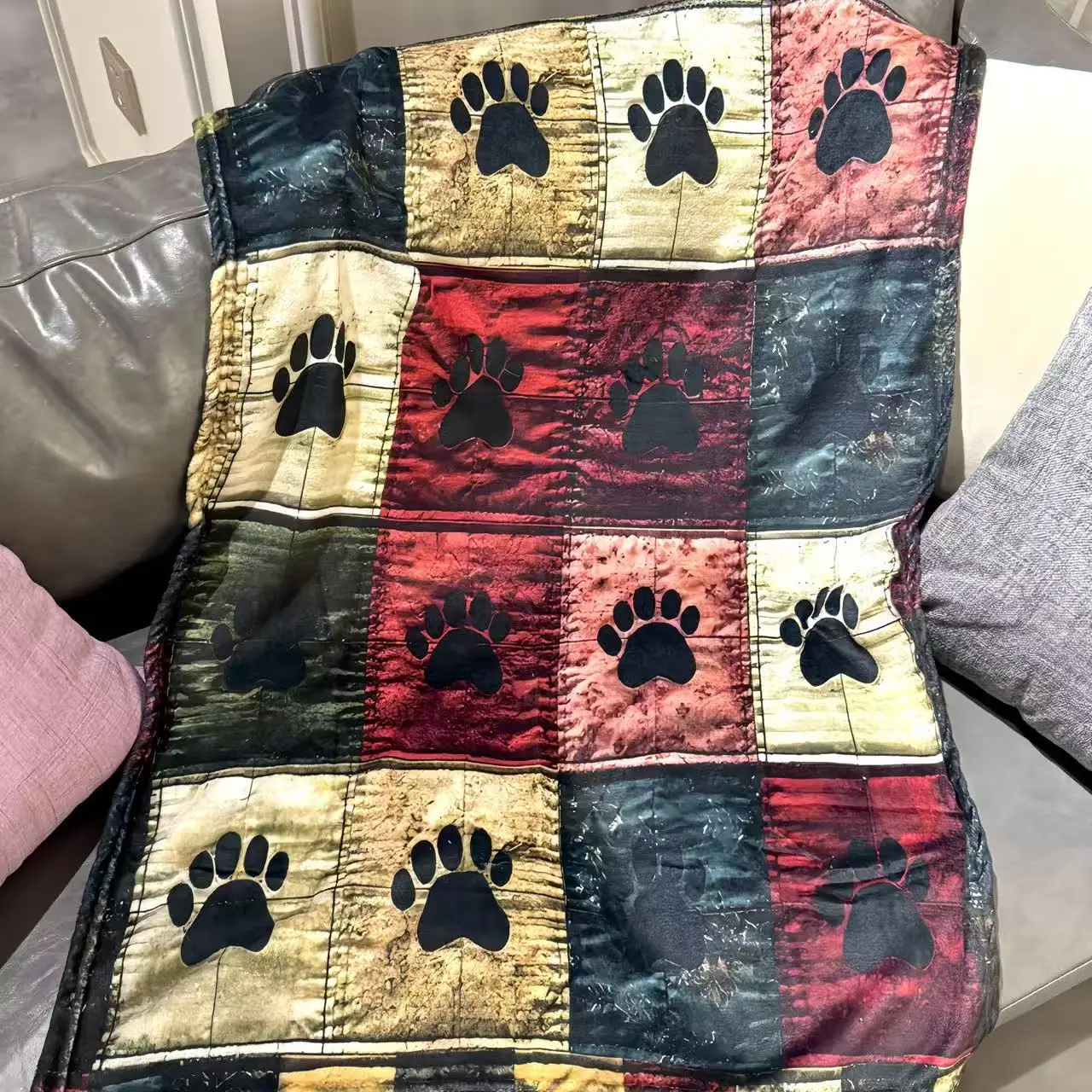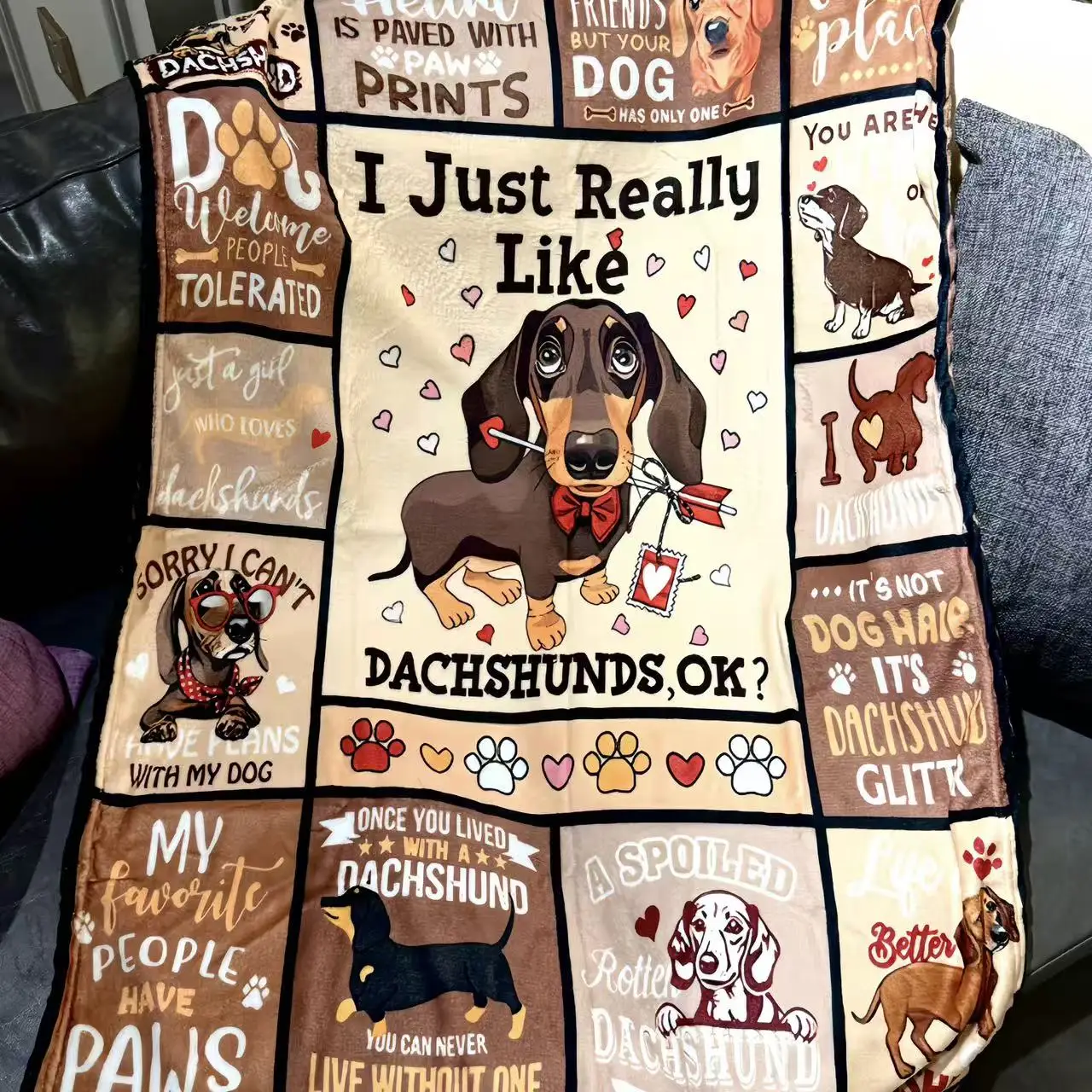 Hot-selling Customizable Dog Paw Flannel Blanket Dachshund Print All-Season Use
