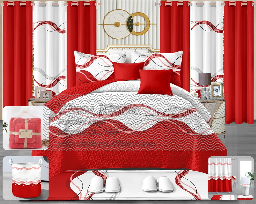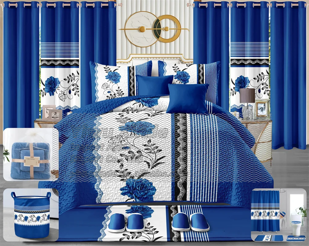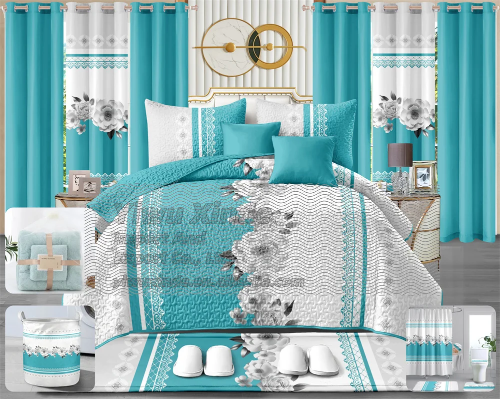 Modern 24 Piece King Size American Bedding Set High Quality Bedspread with Printed Curtains Luxury 24 Pieces Bedding Set