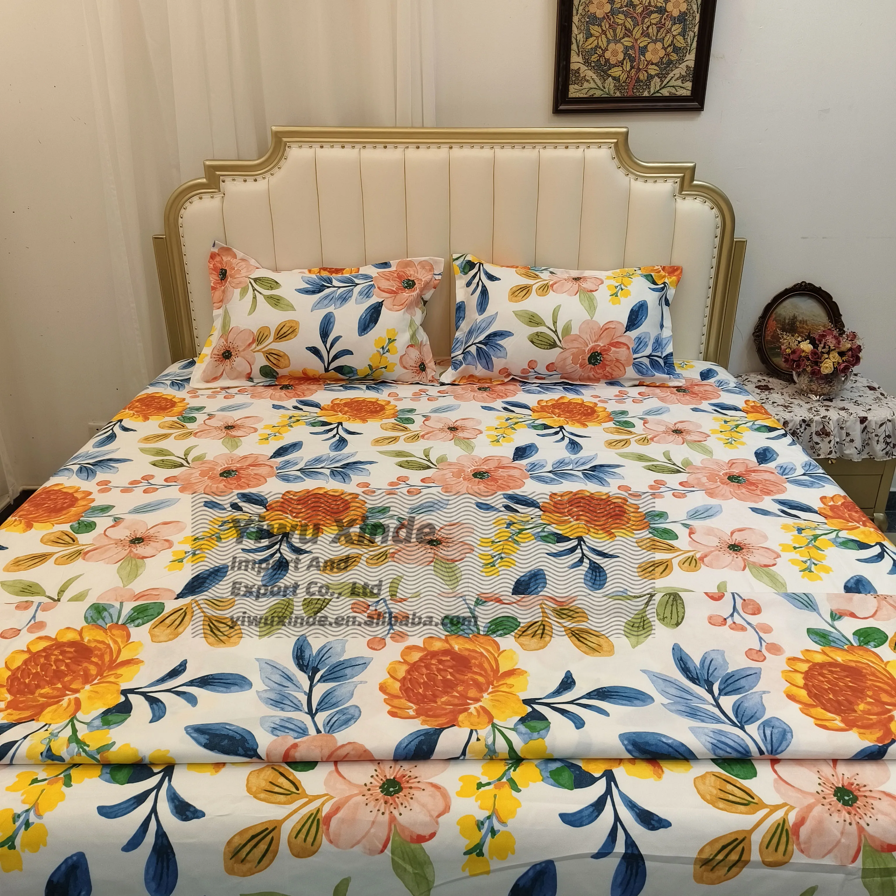 Floral 4 PCS Bedding Set Luxury Bedding Ensemble Modern Bedroom Decor Soft Cotton Textile Elegant Print Home Textile Collection