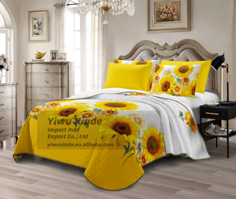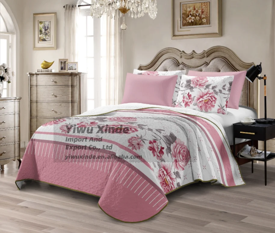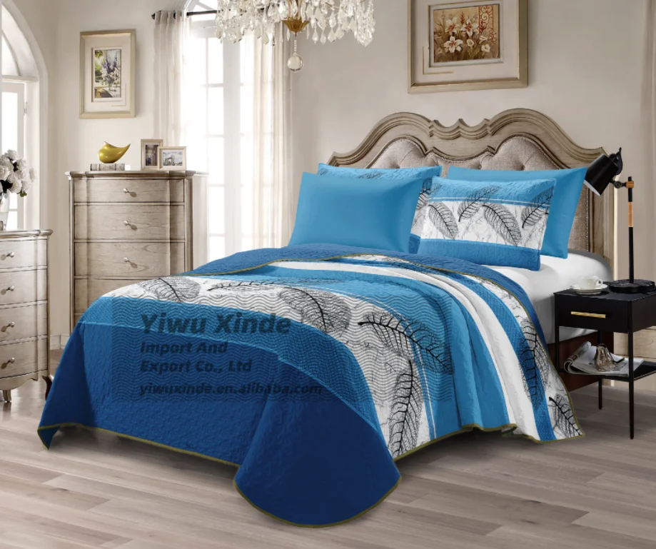 Printed Quilt Set Three Piece Collection With Bedspread and Coverlet All Season Lightweight Bed Cover for Hotel Home
