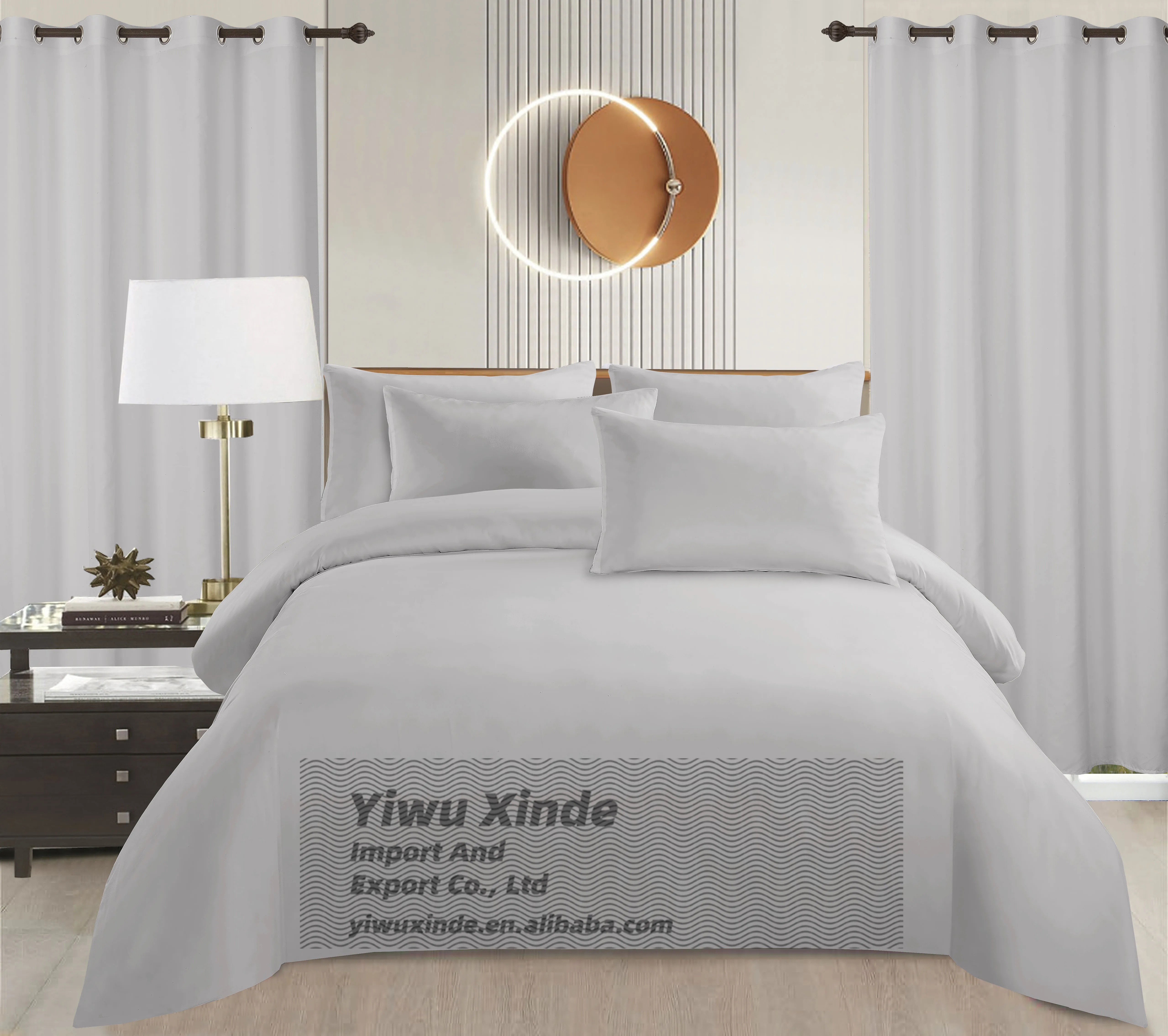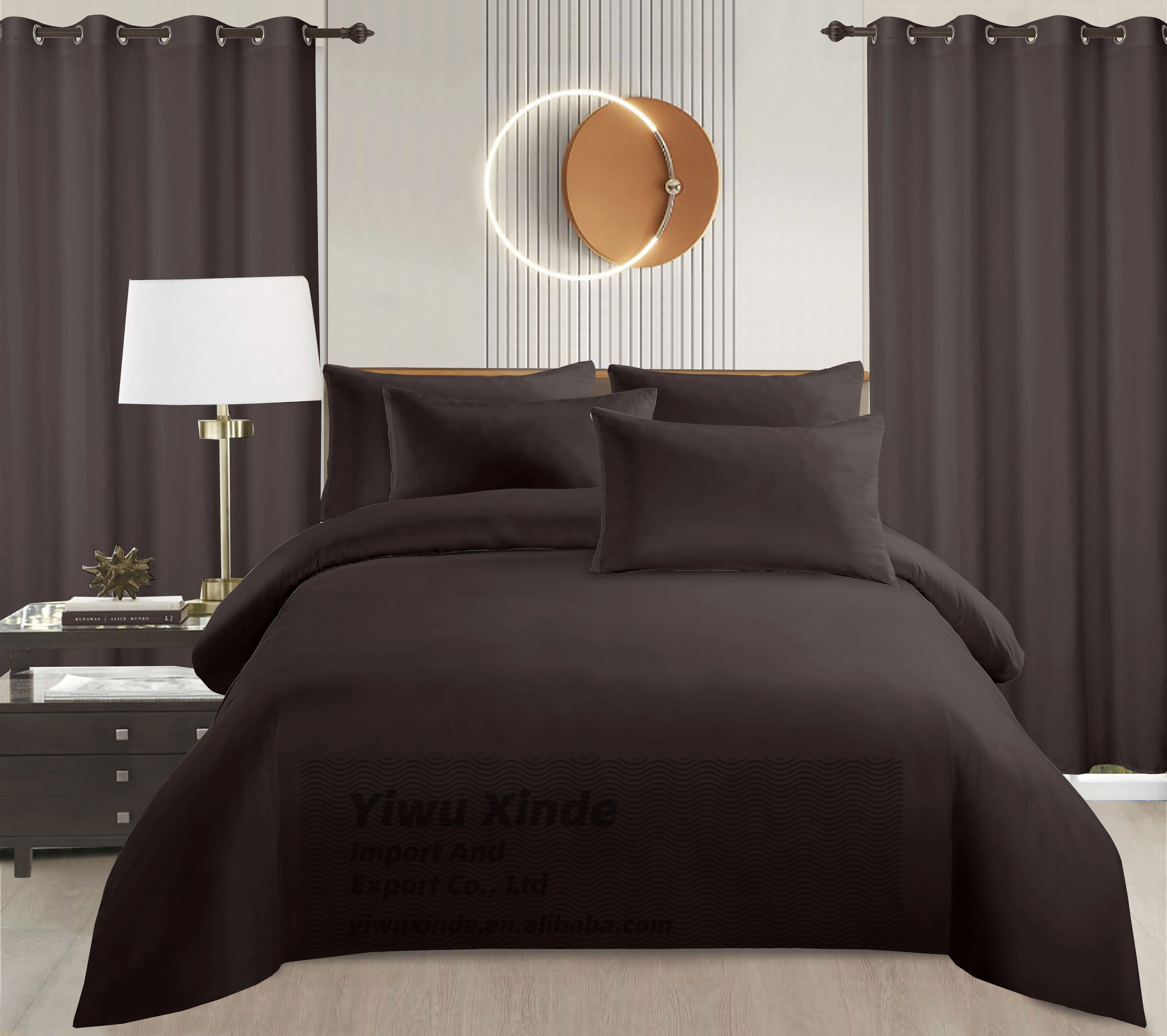 100% Bamboo Fiber Woven Modern Solid Color Bedding Set Super King Size Includes Flat Bed Sheet Fitted Duvet Cover