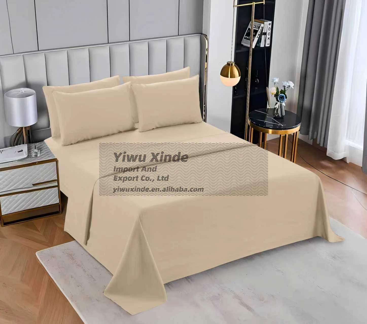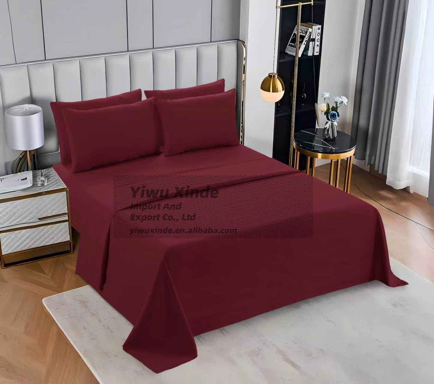 Luxury 6 Piece Bedding Set Solid Color Queen & King Size Flat Bed Sheets for Comfortable Sleep and Modern Bedroom