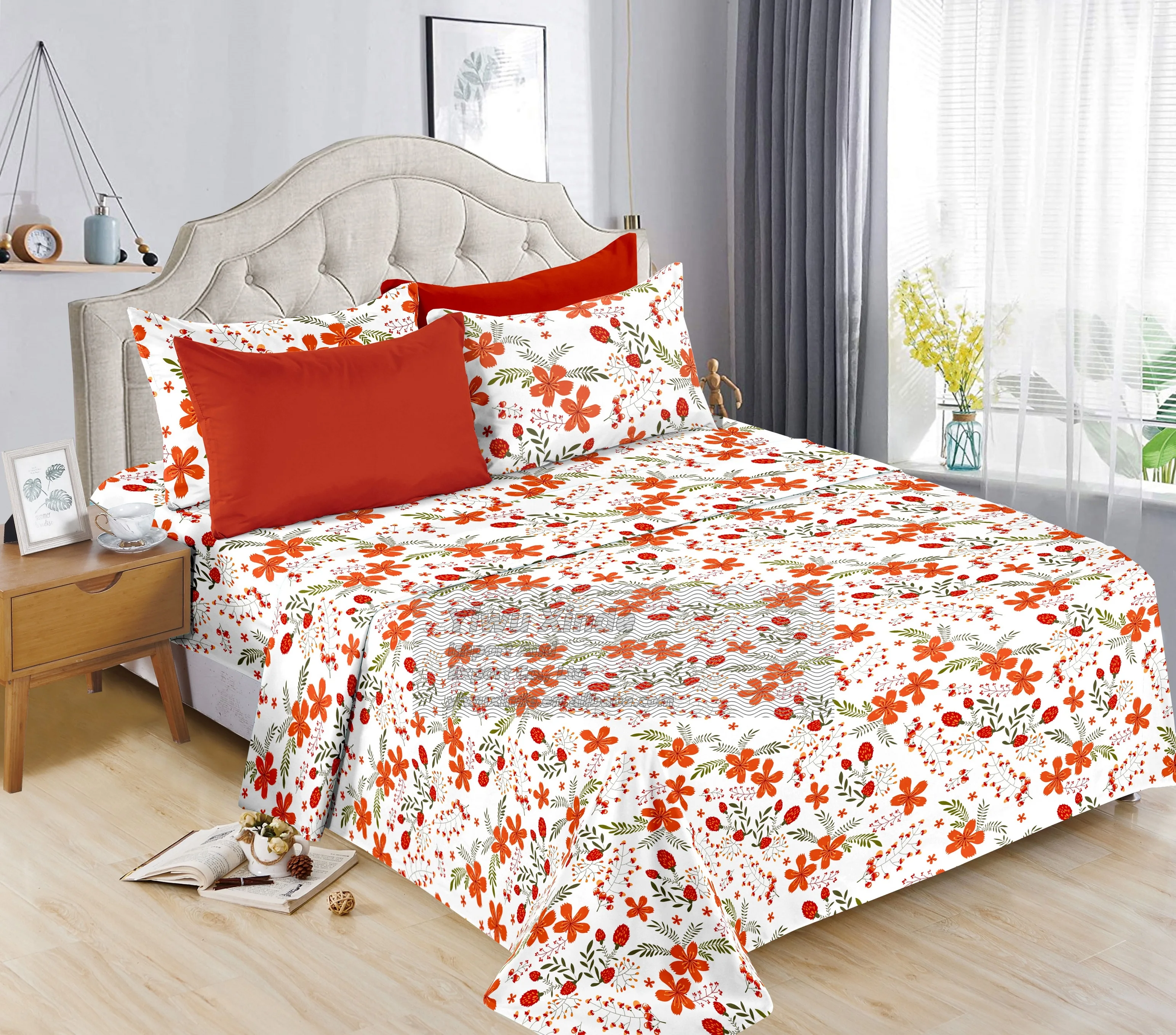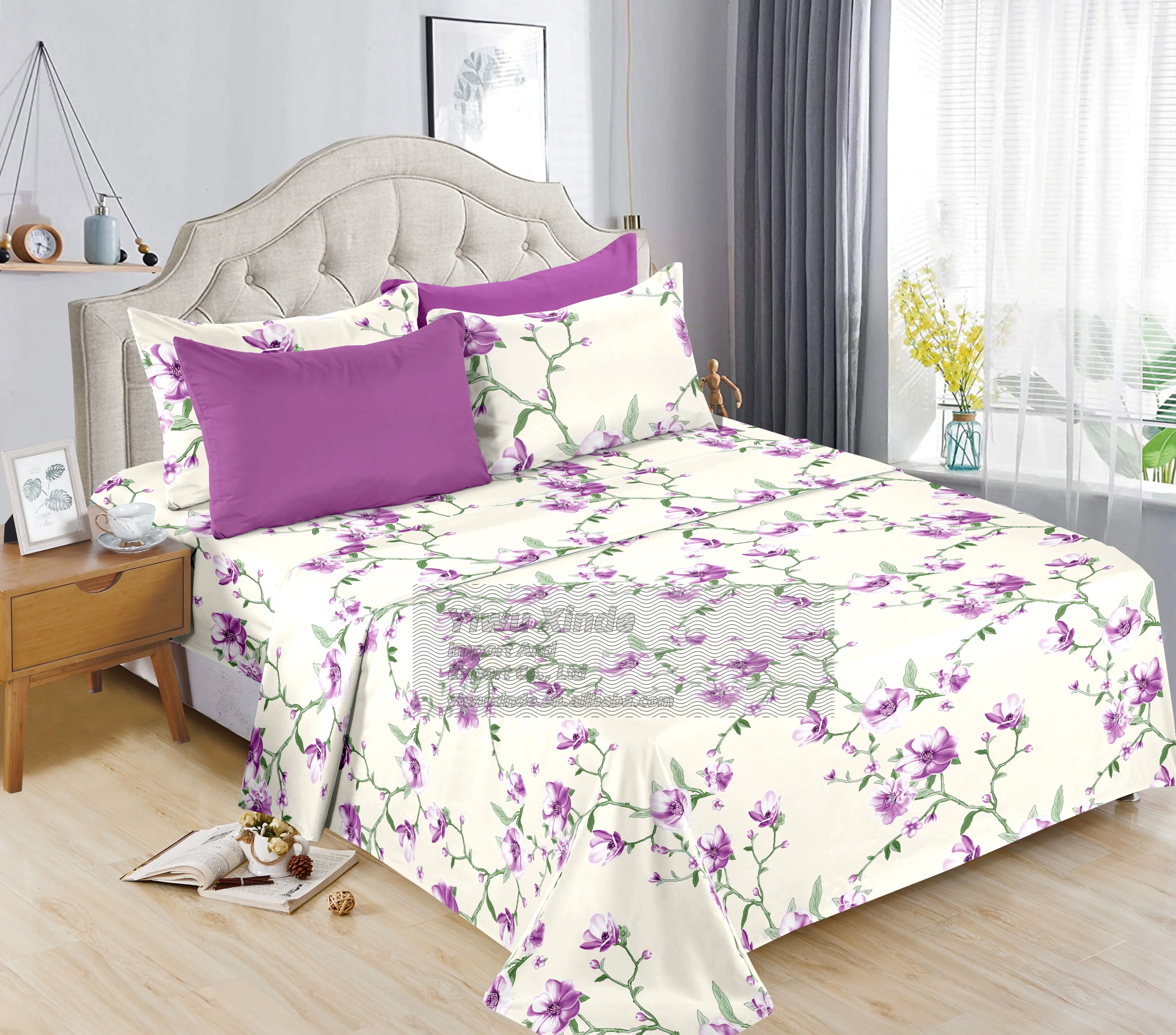 Thick Microfiber Cotton Touch Queen king Size 6 Pcs Bed Sheet Set with Pillowcases Fitted Sheet Bedding Sheet in Stock