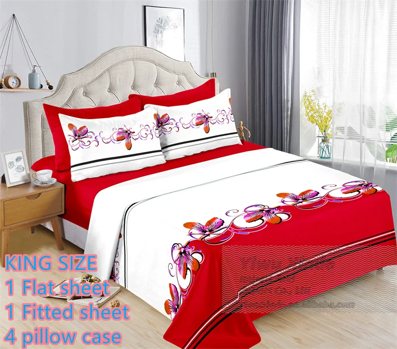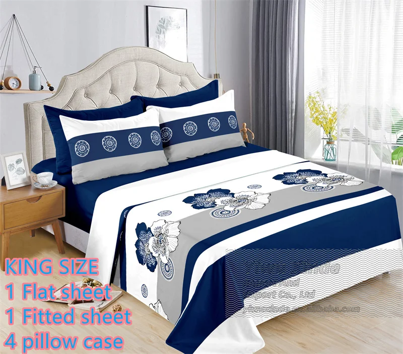 Ready to Ship 6 Pieces Bed Sheet Set king Size Cotton Flat Fitted Sheet with Pillowcases Cheap Price Floral Printed Bedding Set