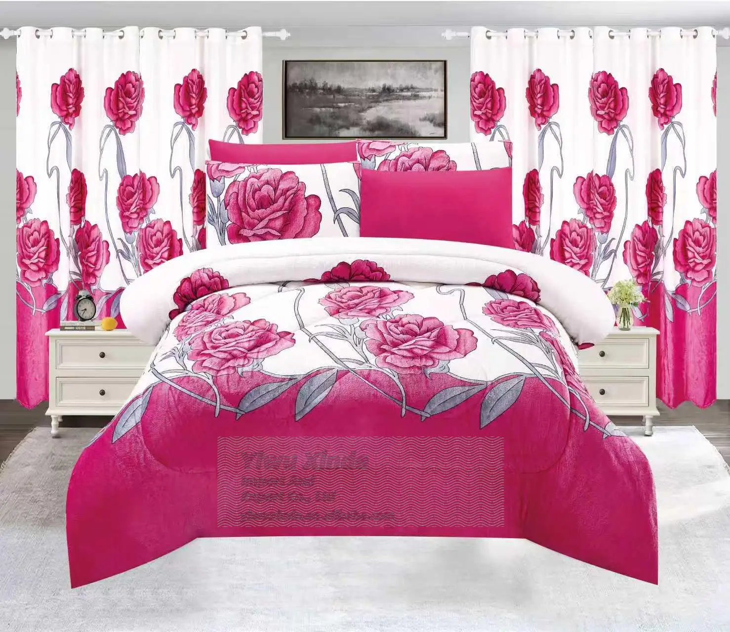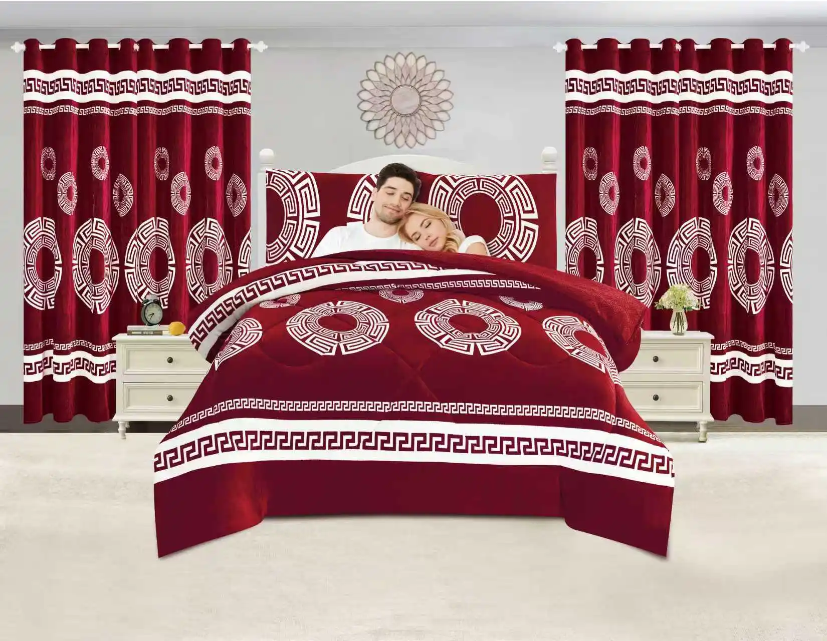 Hot Selling Lilianna 7 Pieces king Size Borrego Sherpa Winter Comforter Set with Curtains