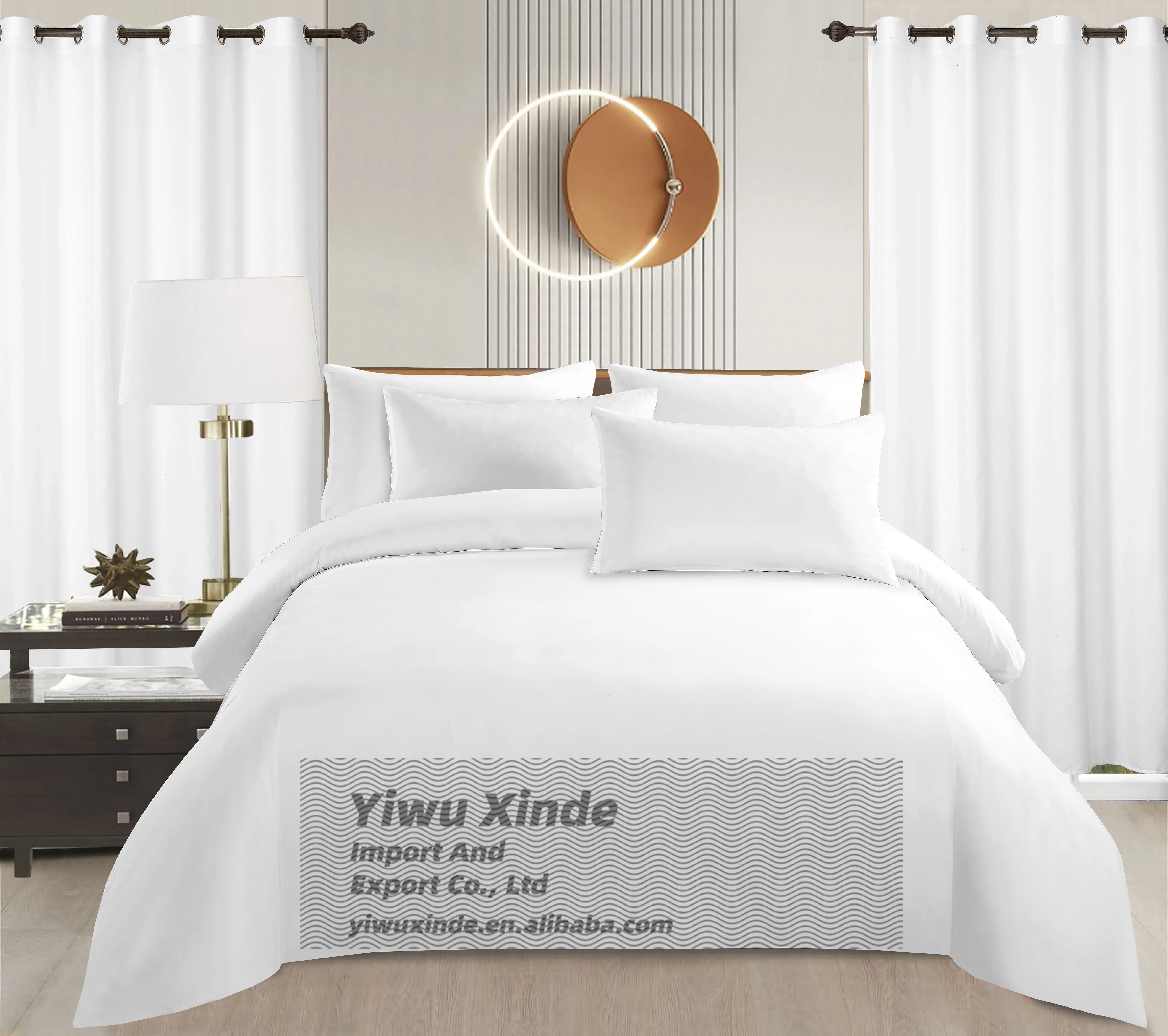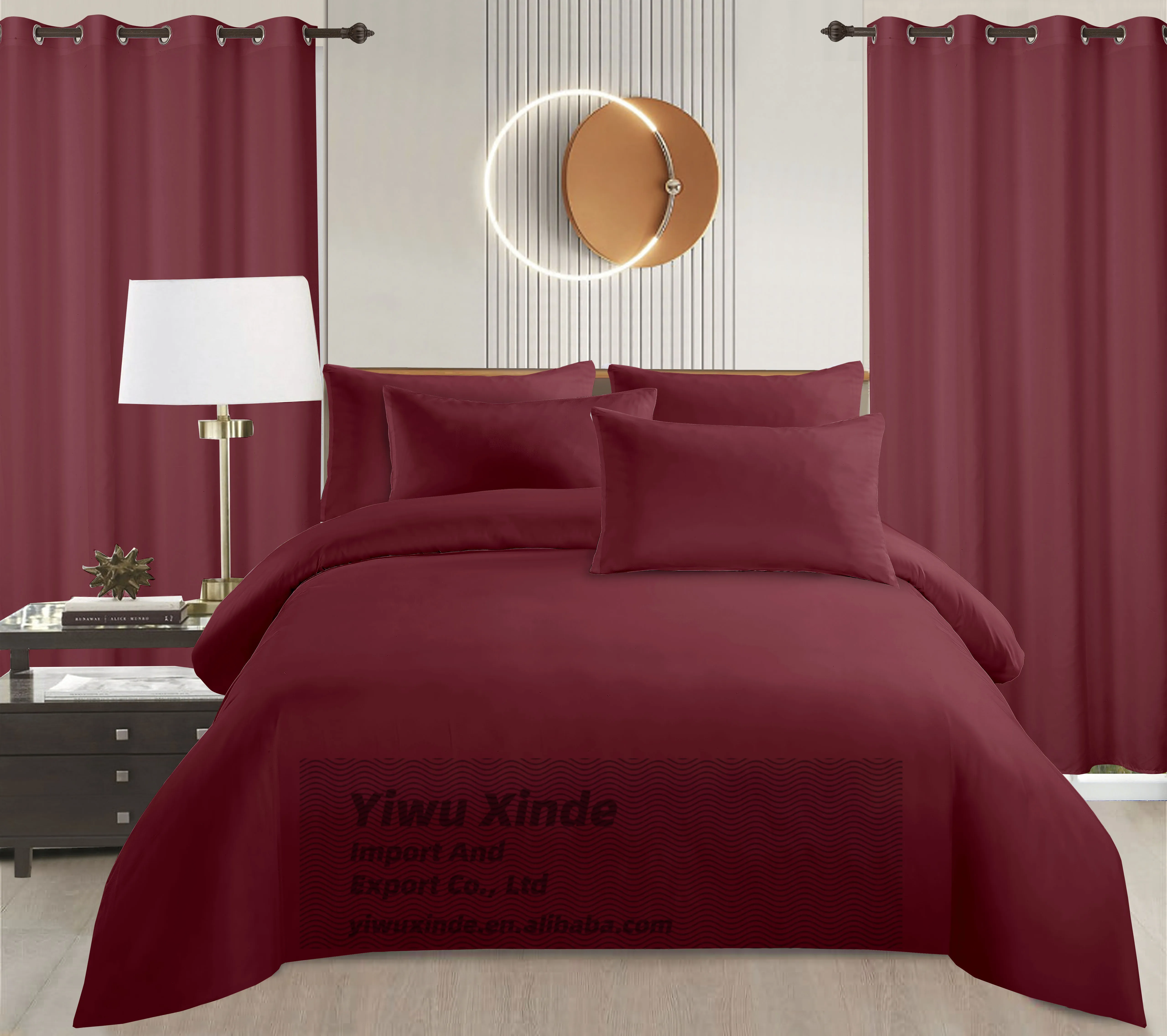 America Market Hot Selling 8pcs King Size Bedding Set Simple Woven Polyester Plain Colors Sheet Sets Curtains